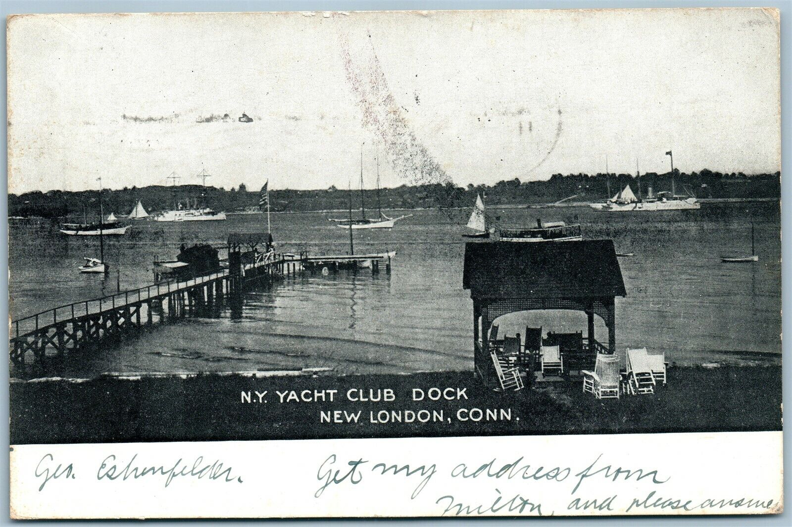 NEW LONDON CT N.Y. YACHT CLUB DOCK ANTIQUE POSTCARD