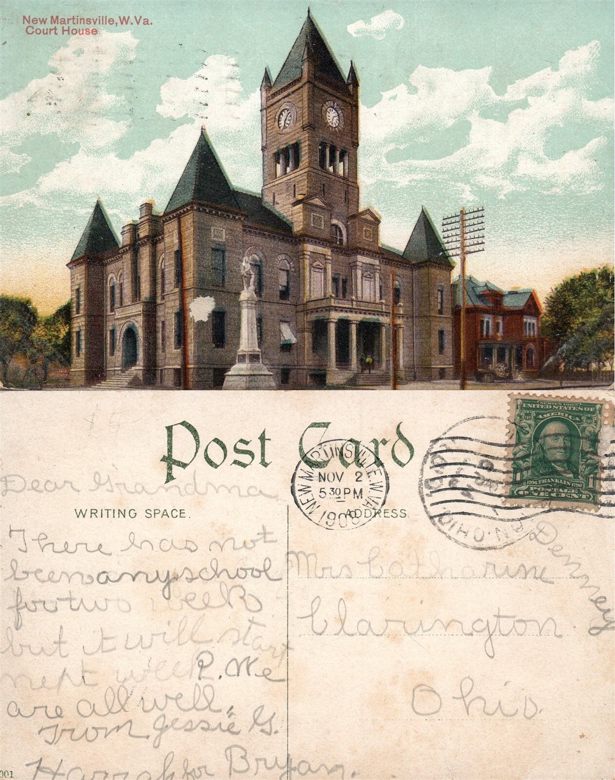 NEW MARTINSVILLE W.VA COURT HOUSE ANTIQUE 1908 POSTCARD