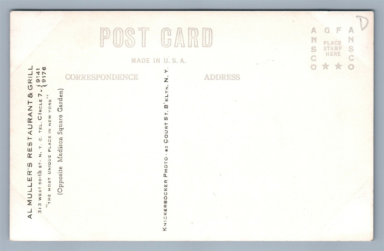NEW YORK CITY AL MULLER'S RESTAURANT & GRILL VINTAGE REAL PHOTO POSTCARD RPPC