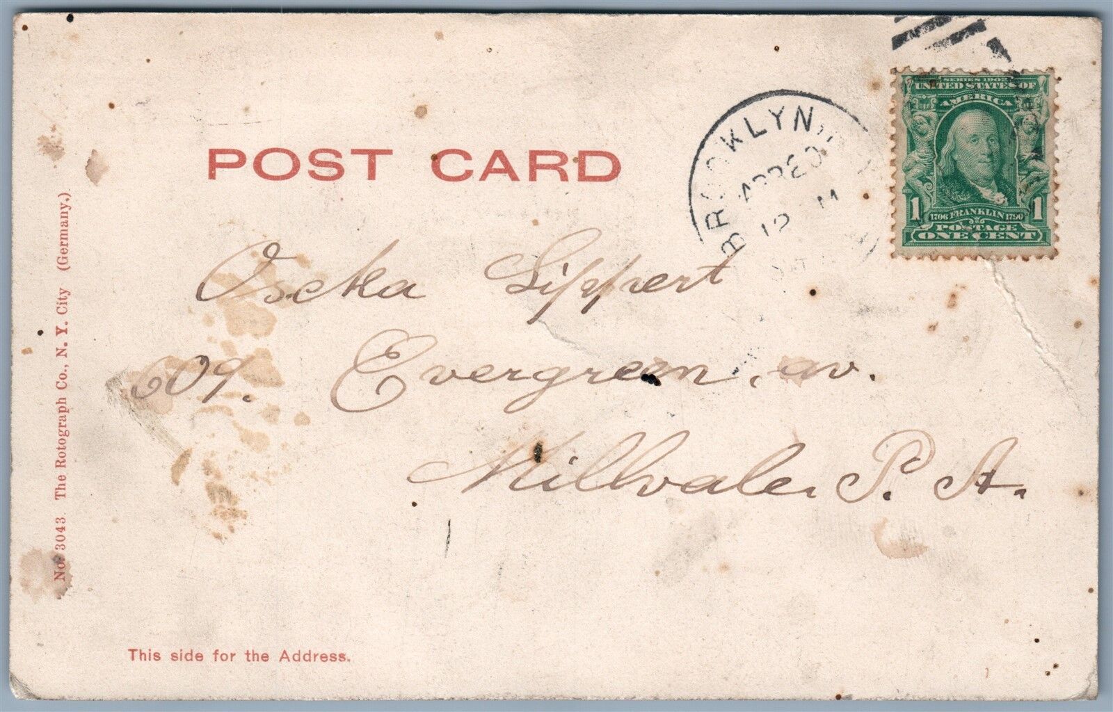 NEW YORK CITY BROADWAY LOOKING SOUTH UNDIVIDED ANTIQUE POSTCARD