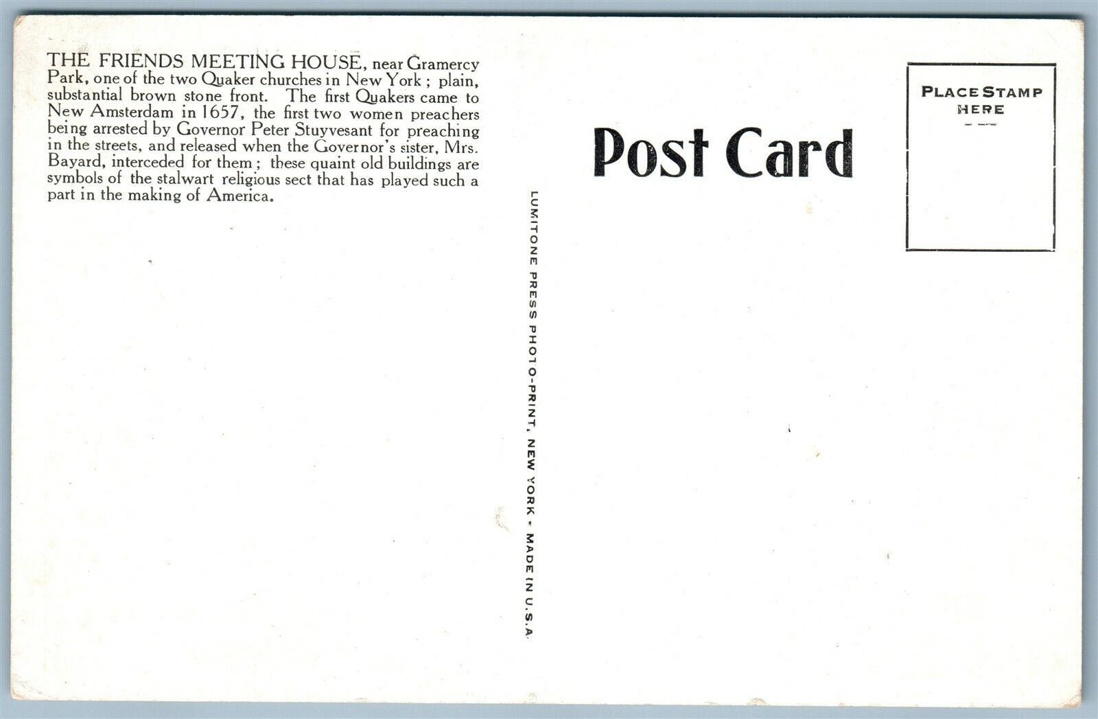 NEW YORK CITY NY FRIENDS MEETING HOUSE VINTAGE POSTCARD