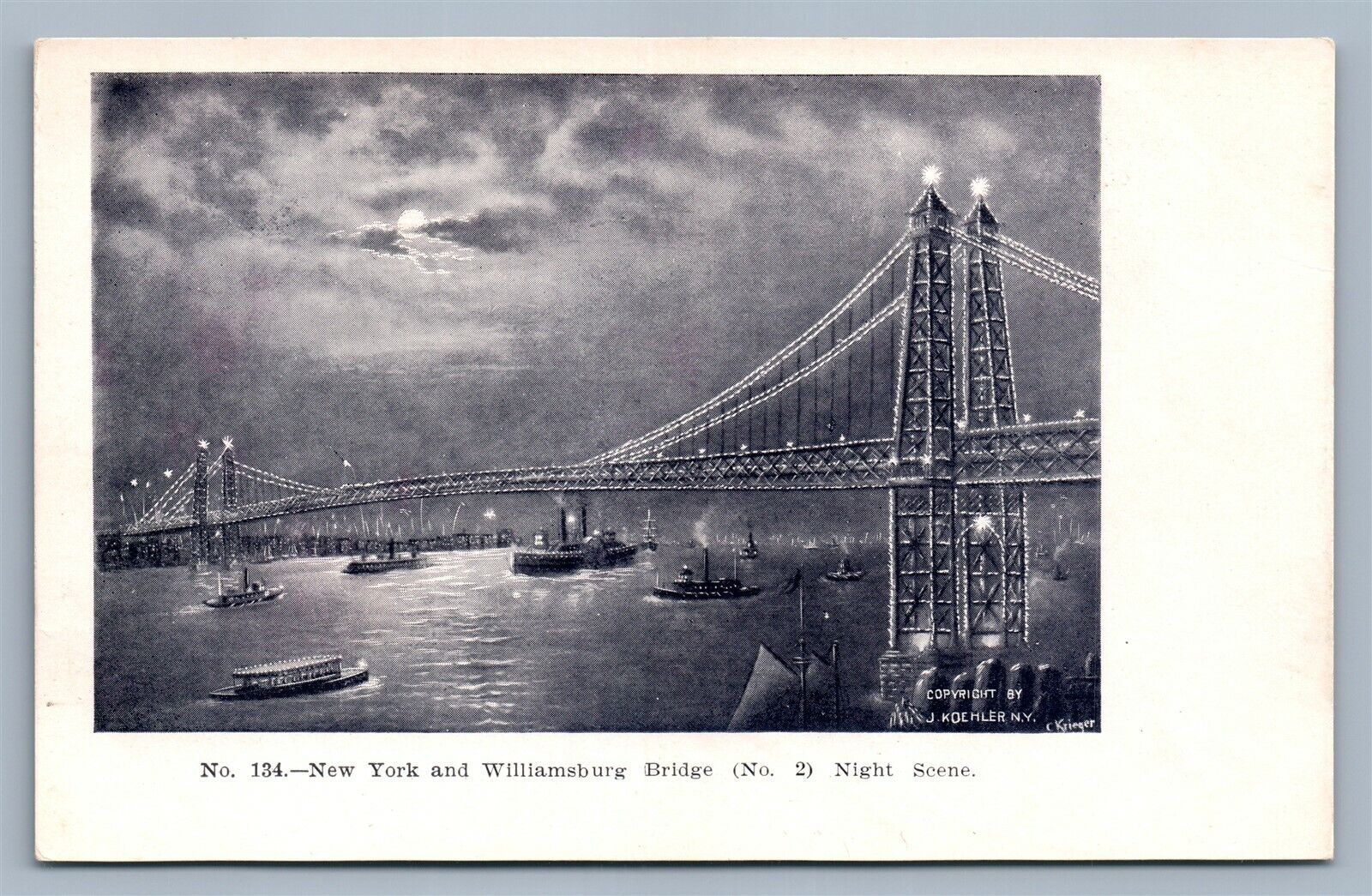 NEW YORK NY WILLIAMSBURG BRIDGE ANTIQUE POSTCARD #134