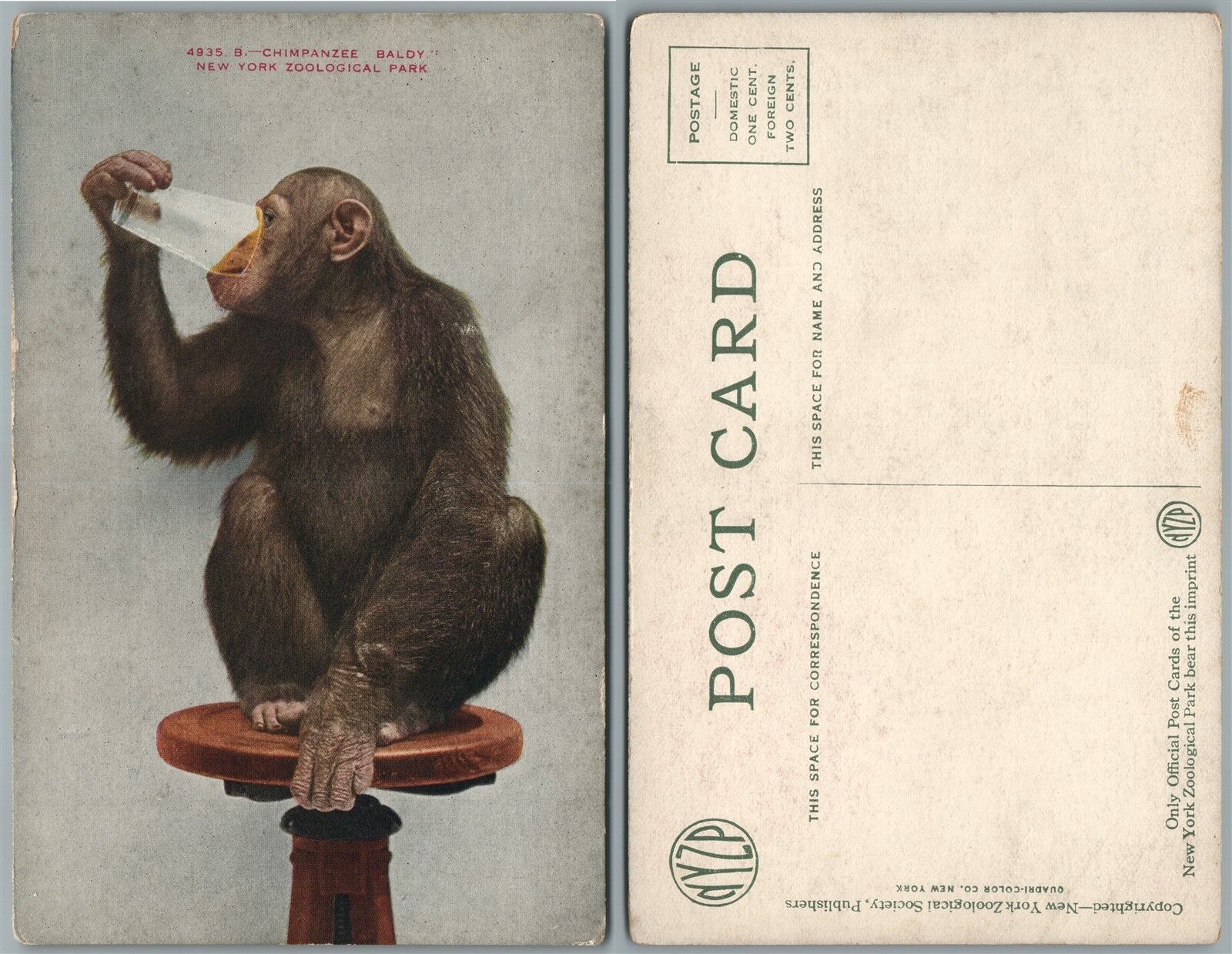 NEW YORK ZOO N.Y. ANTIQUE POSTCARD CHIMPANZEE BALDY