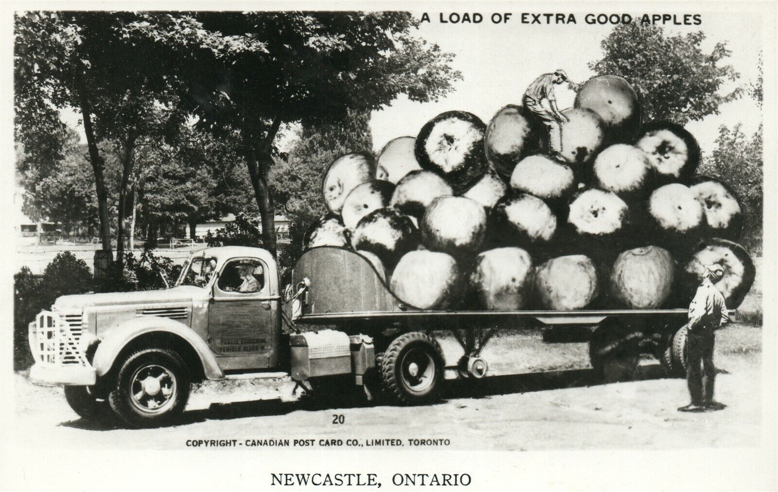 NEWCASTLE CANADA EXAGGERATED APPLES on TRUCK VINTAGE REAL PHOTO POSTCARD RPPC