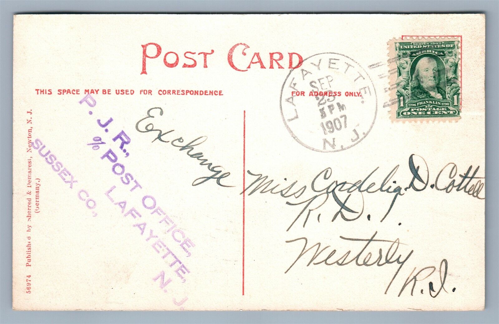 NEWTON NJ METHODIST CHURCH ANTIQUE POSTCARD LAFAYETTE POST OFFICE STAMP