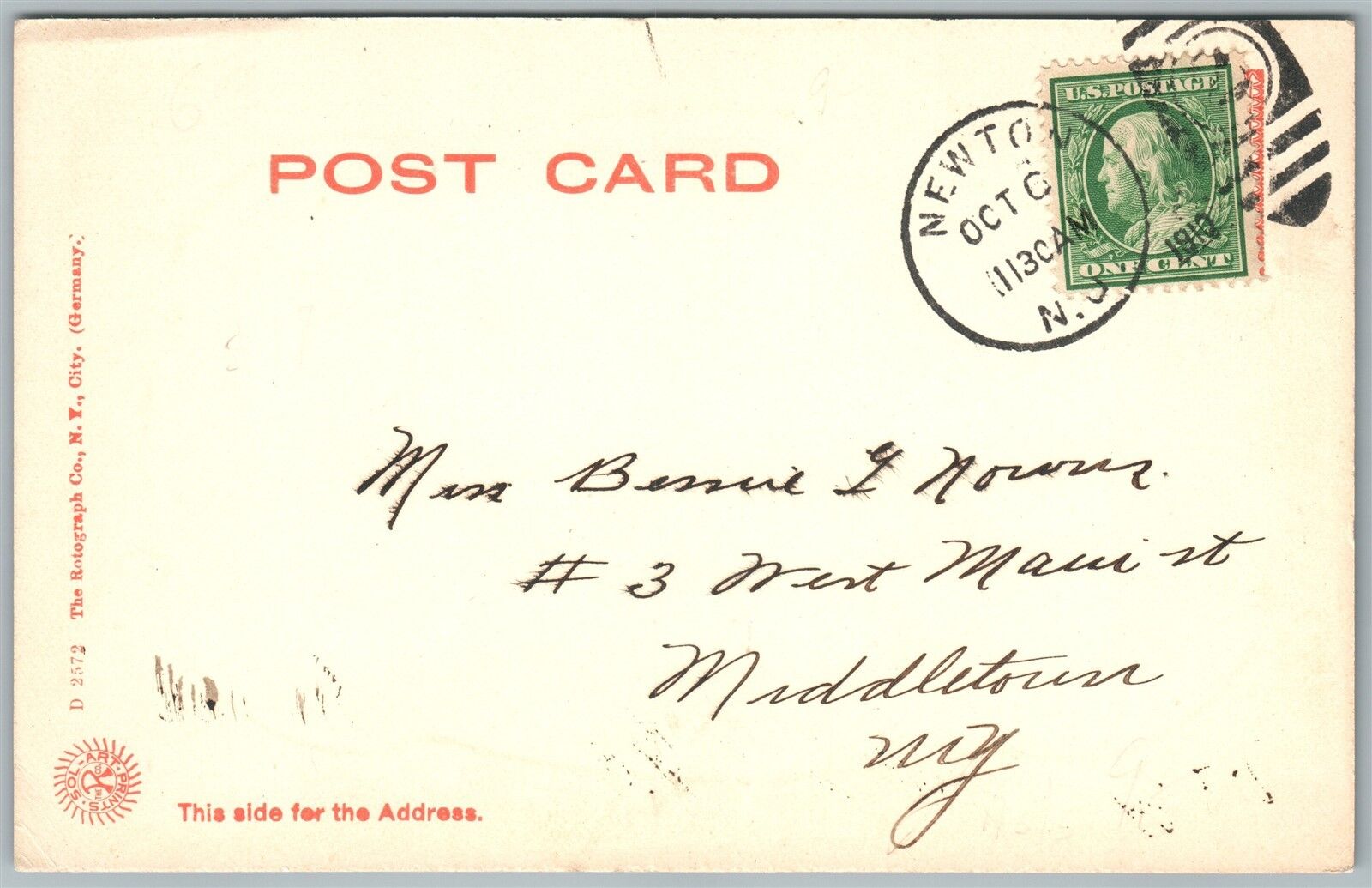 NEWTON NJ SPRING STREET UNDIVIDED 1910 ANTIQUE POSTCARD w/ CORK CANCEL