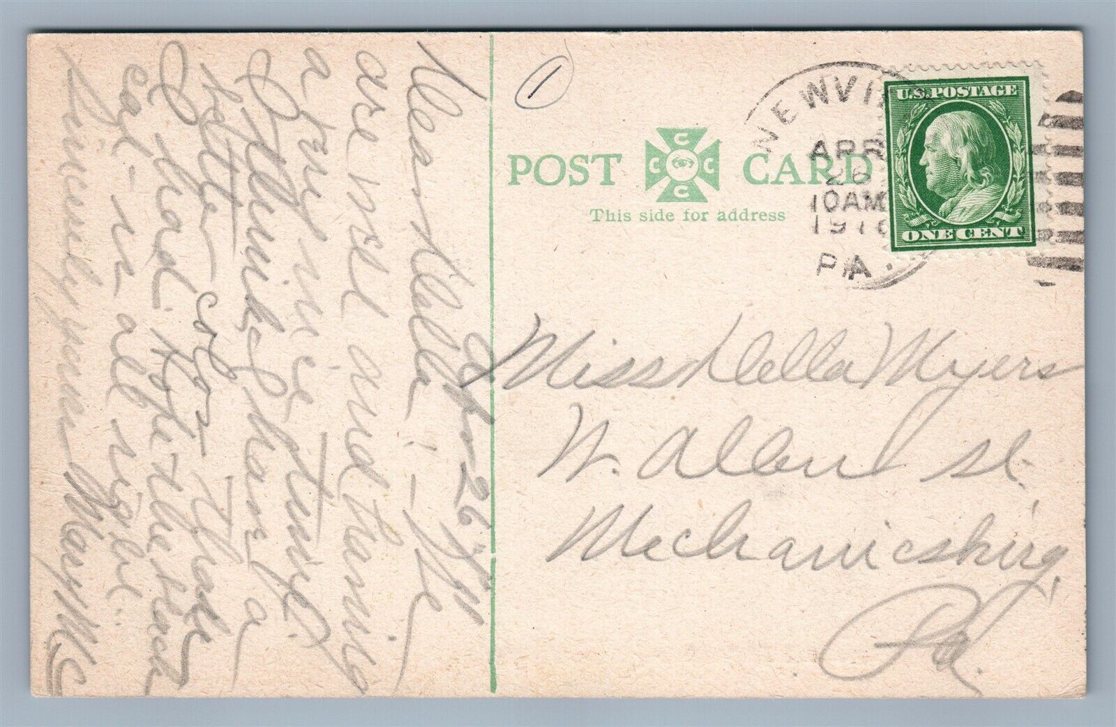 NEWVILLE PA BIG SPRING AVE. & RAILROAD STREET ANTIQUE POSTCARD