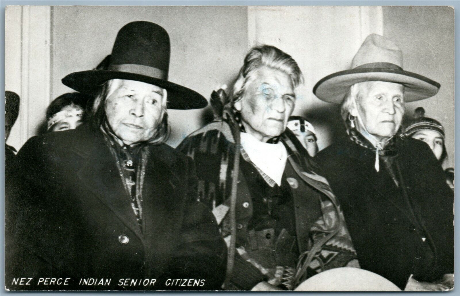 NEZ PERCE AMERICAN INDIAN SENIOR CITIZENS ANTIQUE REAL PHOTO POSTCARD RPPC