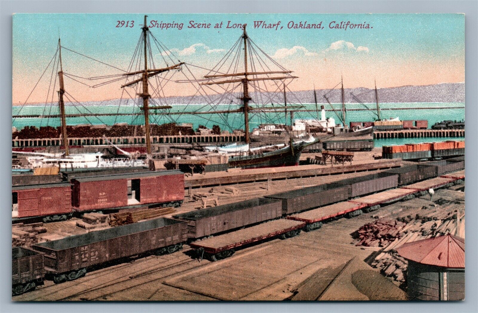OAKLAND CA SHIPPING SCENE AT LONG WHARF ANTIQUE POSTCARD