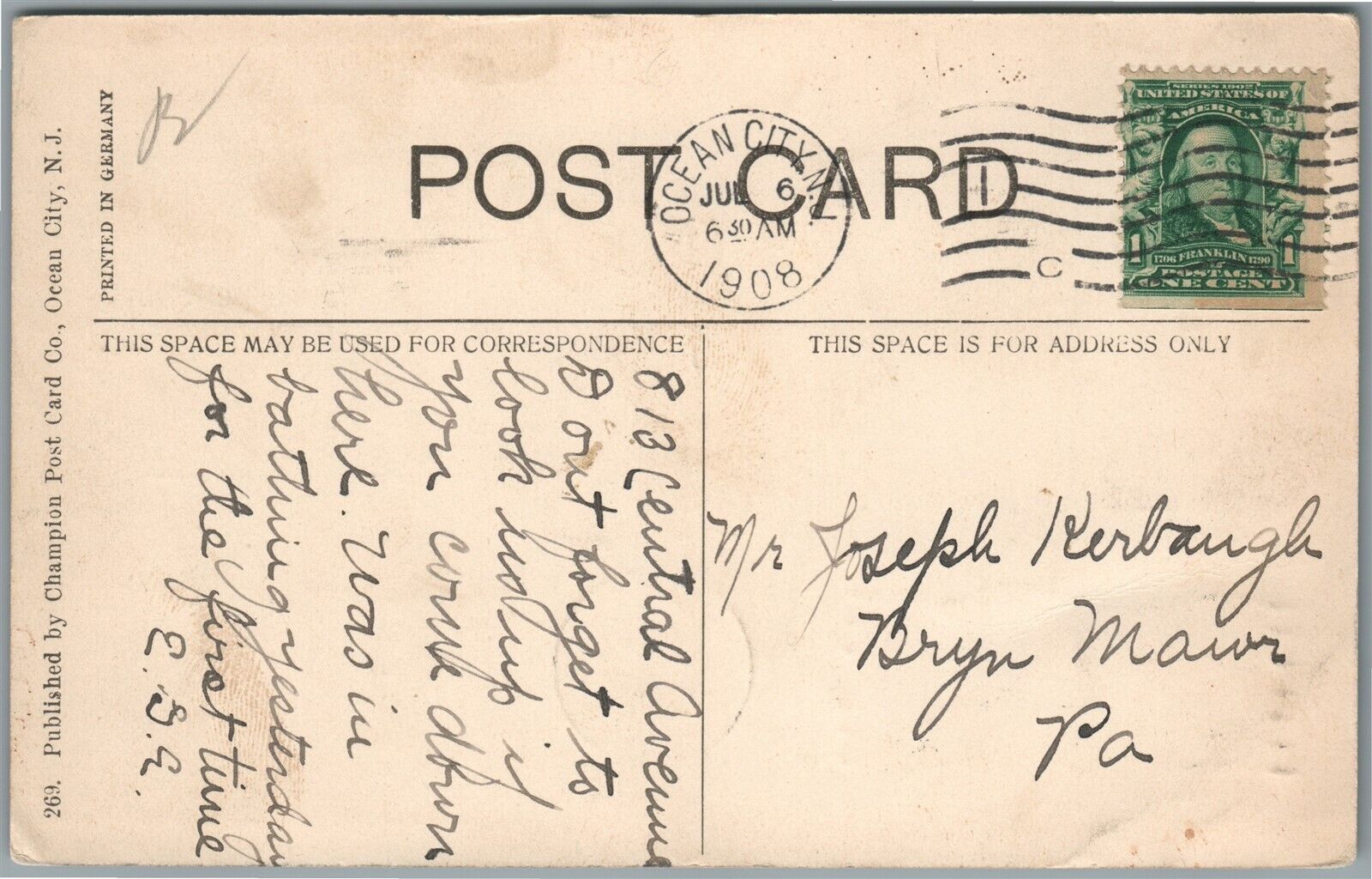 OCEAN CITY NJ WESLEY AVENUE ANTIQUE POSTCARD