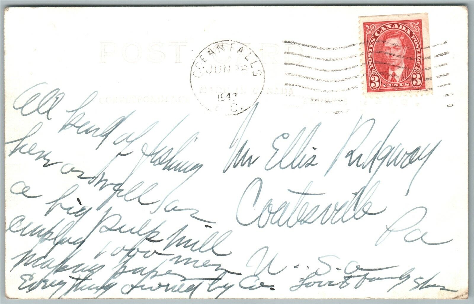 OCEAN FALLS B.C. CANADA EXAGGERATED FISHING 1942 VINTAGE REAL PHOTO POSTCARD RPP