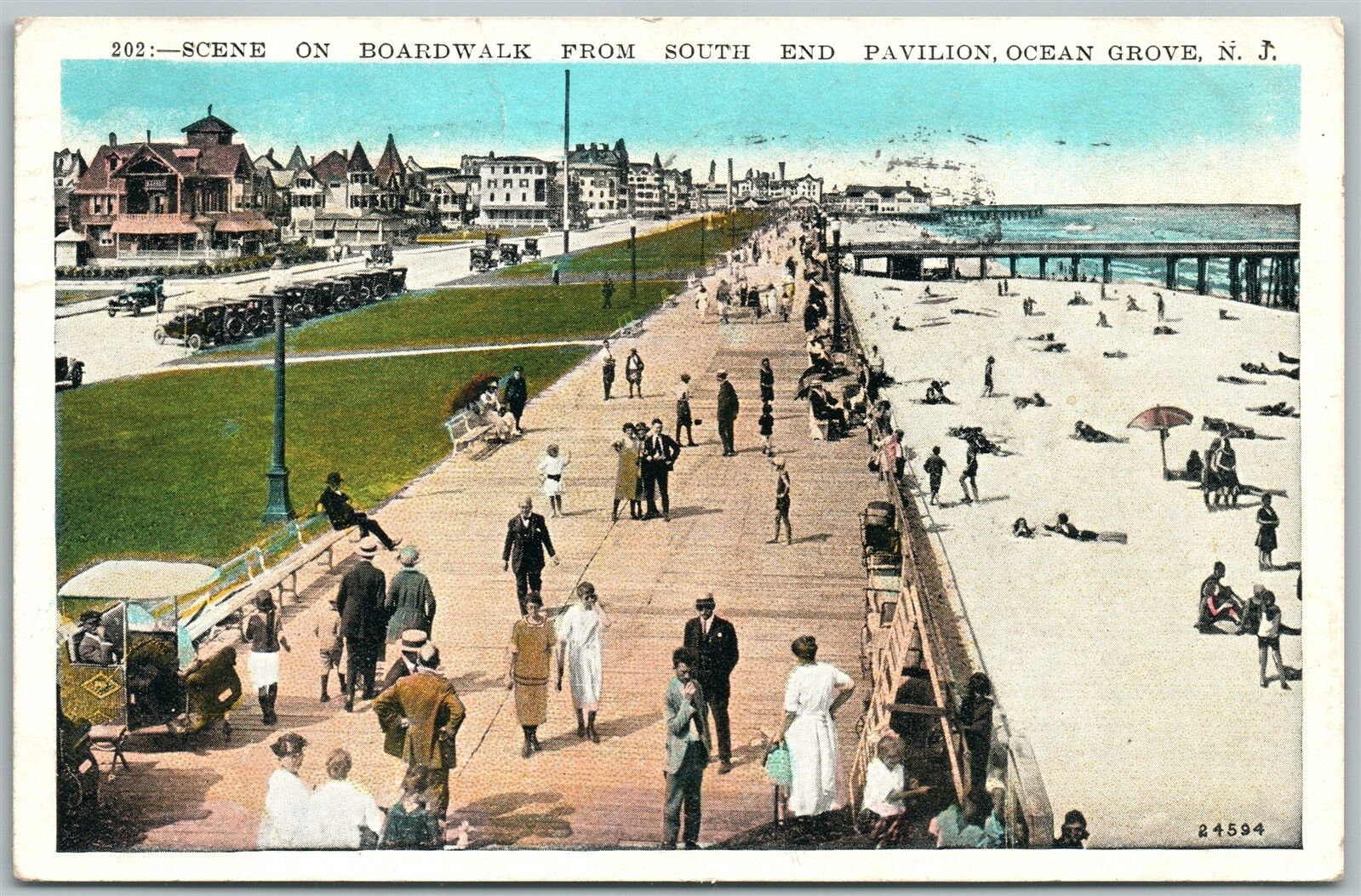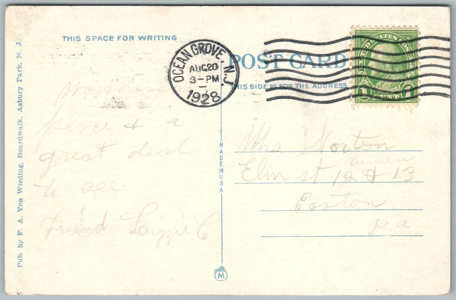 OCEAN GROVE N.J. SCENE ON BOARDWALK 1928 ANTIQUE POSTCARD