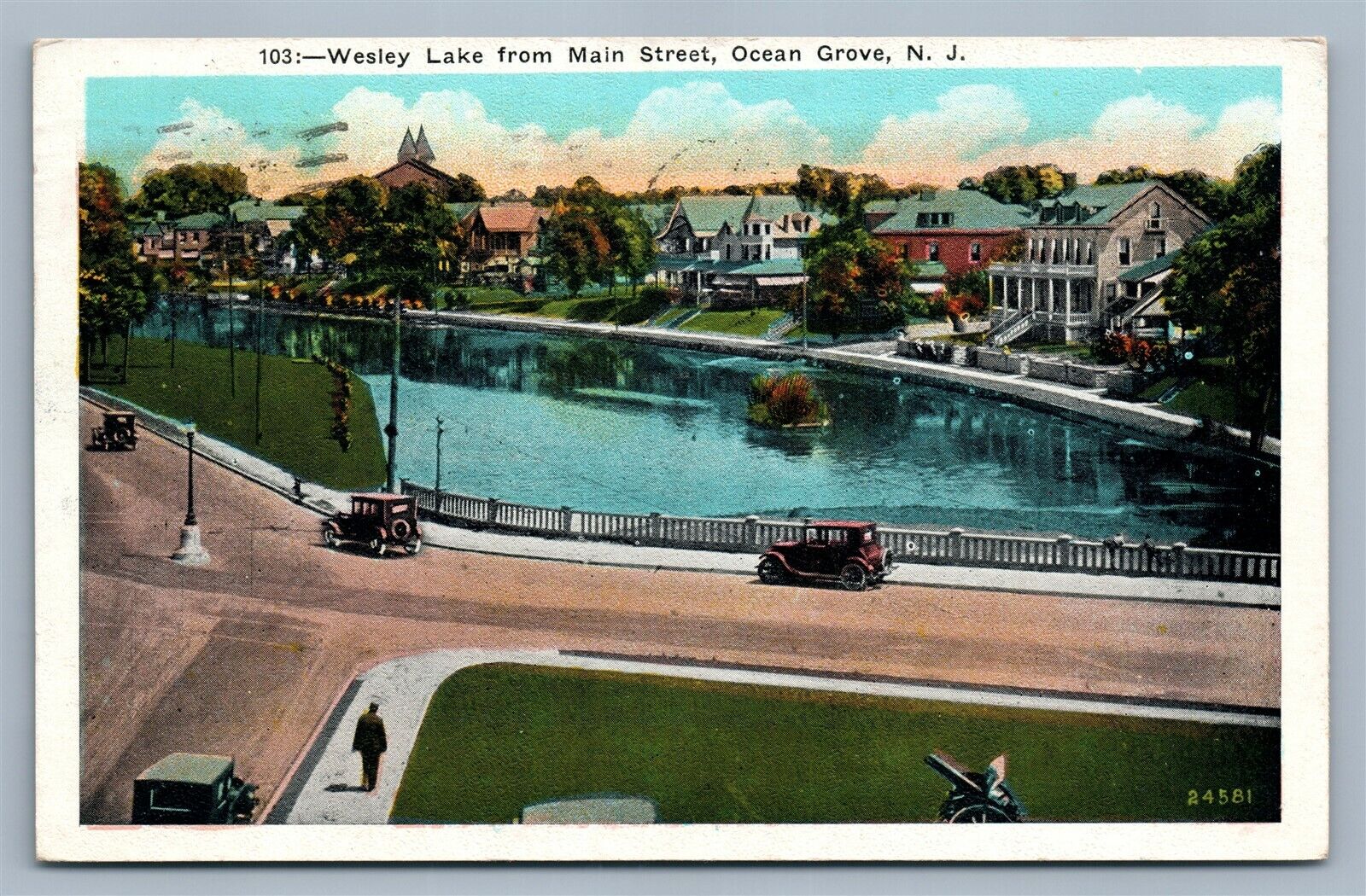 OCEAN GROVE NJ WESLEY LAKE FROM MAIN STREET ANTIQUE POSTCARD