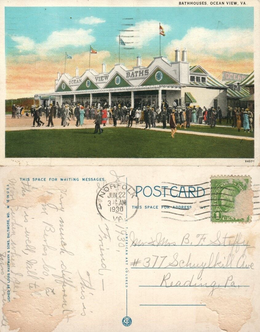 OCEAN VIEW VA BATHHOUSES 1930 VINTAGE POSTCARD