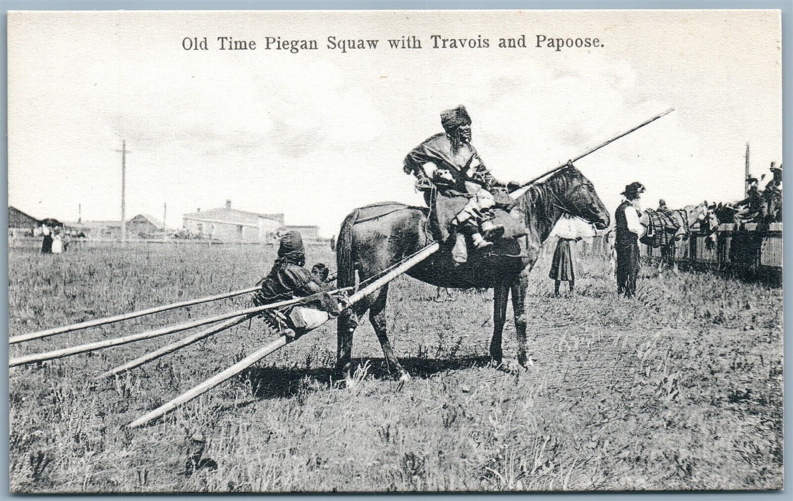 OLD TIME PIEGAN SQUAW w/ TRAVOIS & PAPOOSE ANTIQUE PRIVATE POSTCARD