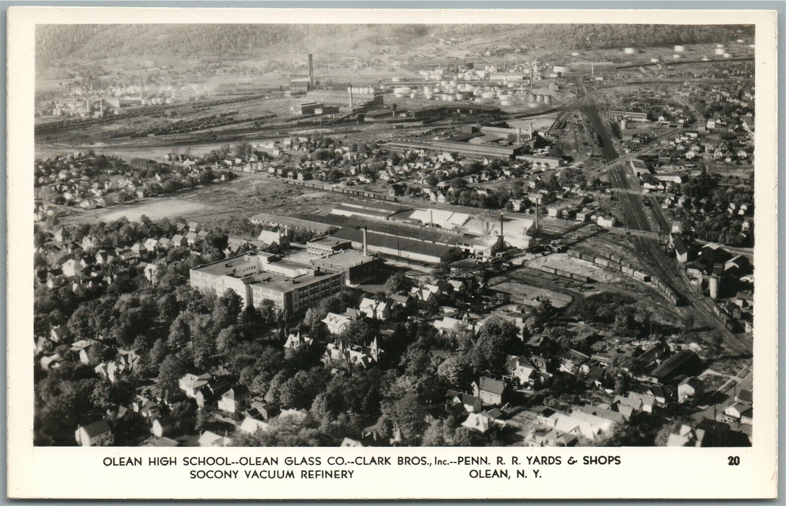 OLEAN NY RAILROAD YARDS HIGH SCHOOL GLASS CO. VINTAGE REAL PHOTO POSTCARD RPPC