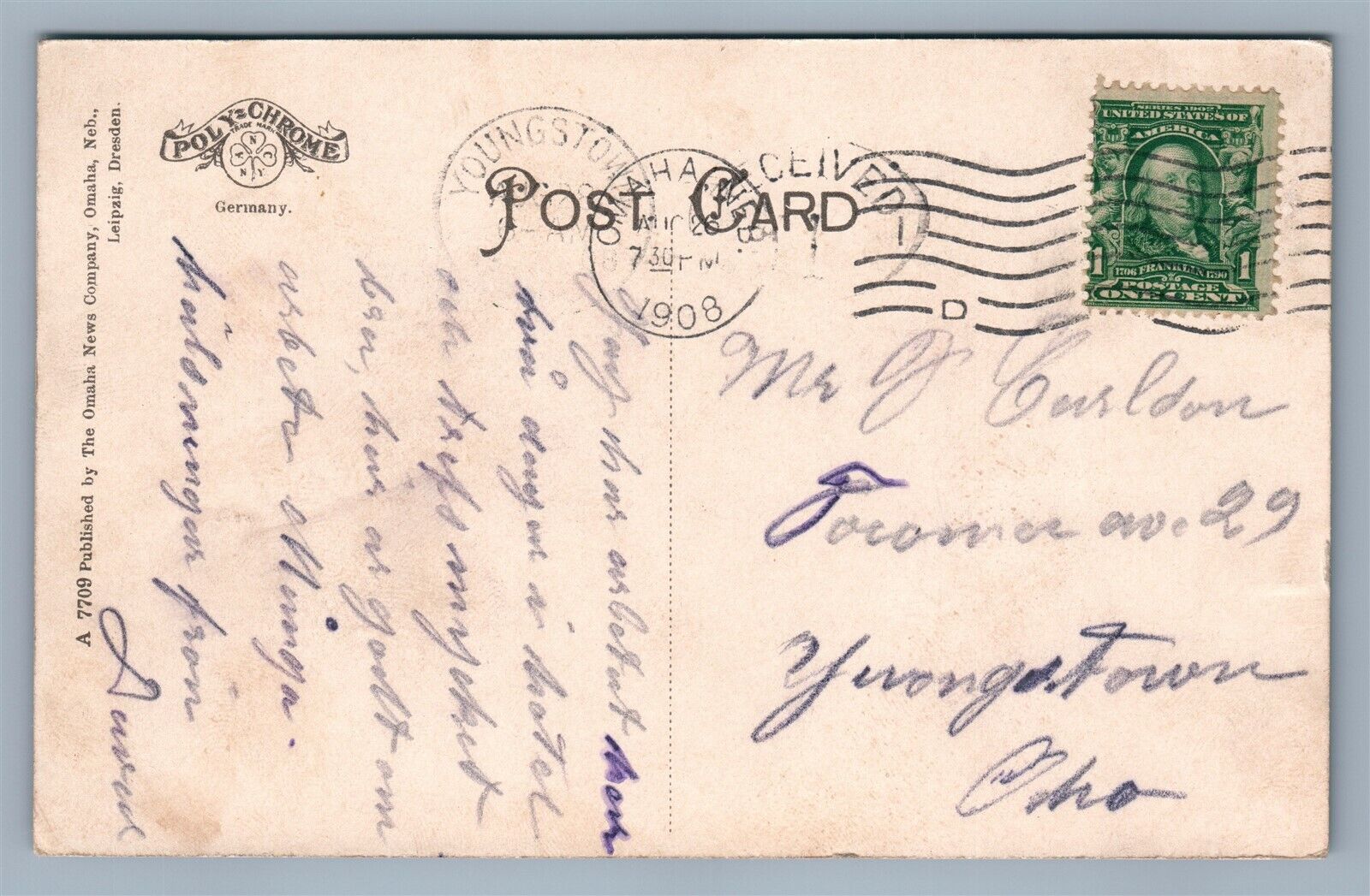 OMAHA NE BURLINGTON RAILROAD STATION RAILWAY TRAIN DEPOT ANTIQUE POSTCARD