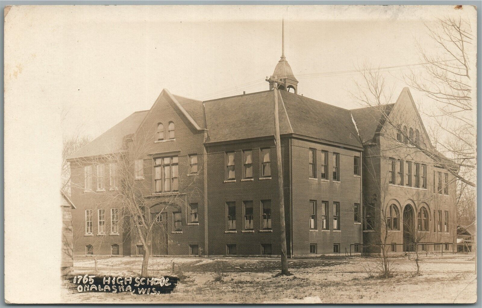 ONALASKA WI HIGH SCHOOL ANTIQUE REAL PHOTO POSTCARD RPPC