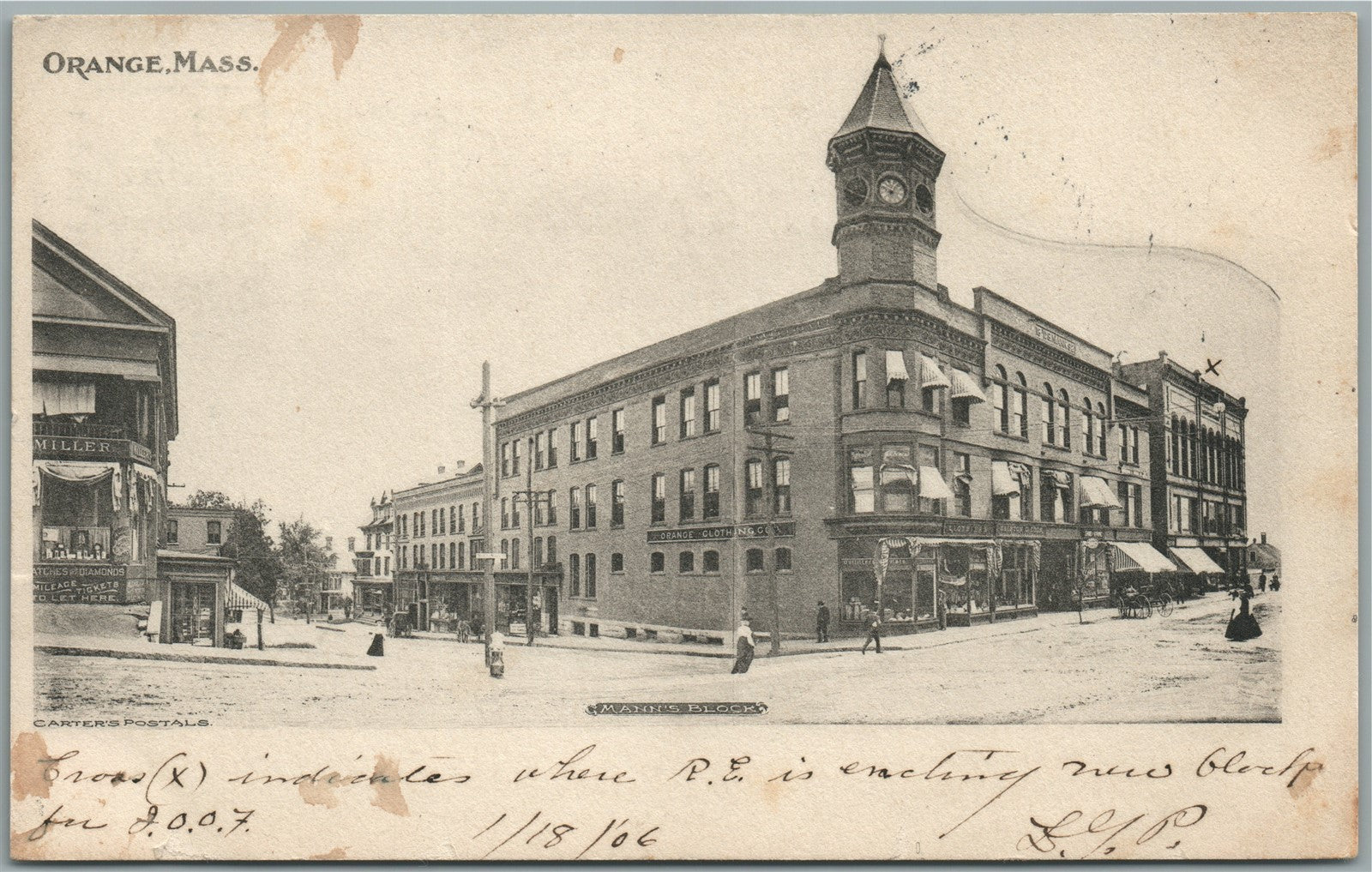 ORANGE MA MANN'S BLOCK ANTIQUE POSTCARD