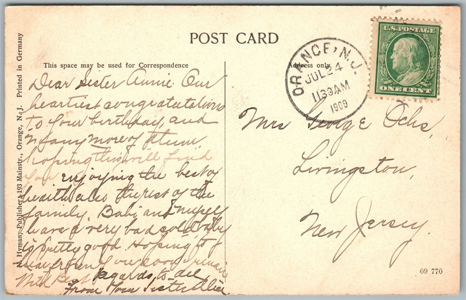 ORANGE NJ MAIN STREET BAND STAND 1909 ANTIQUE POSTCARD