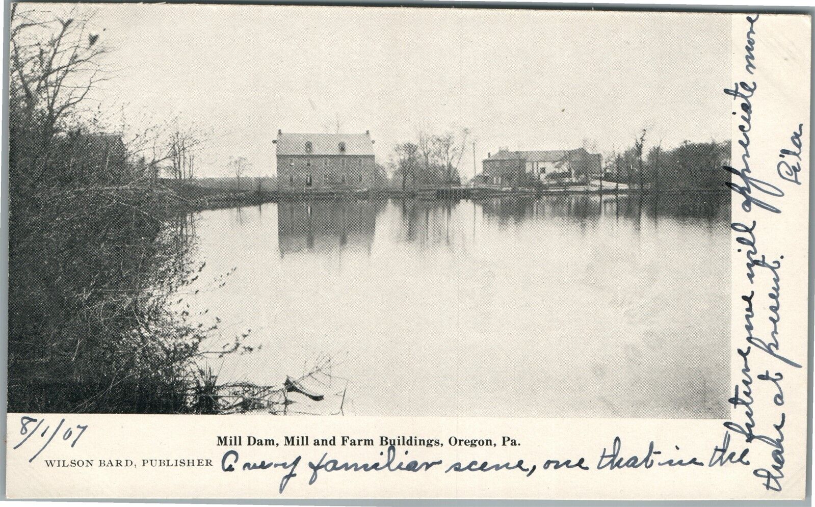 OREGON PA MILL DAM AND FARM BUILDINGS ANTIQUE POSTCARD
