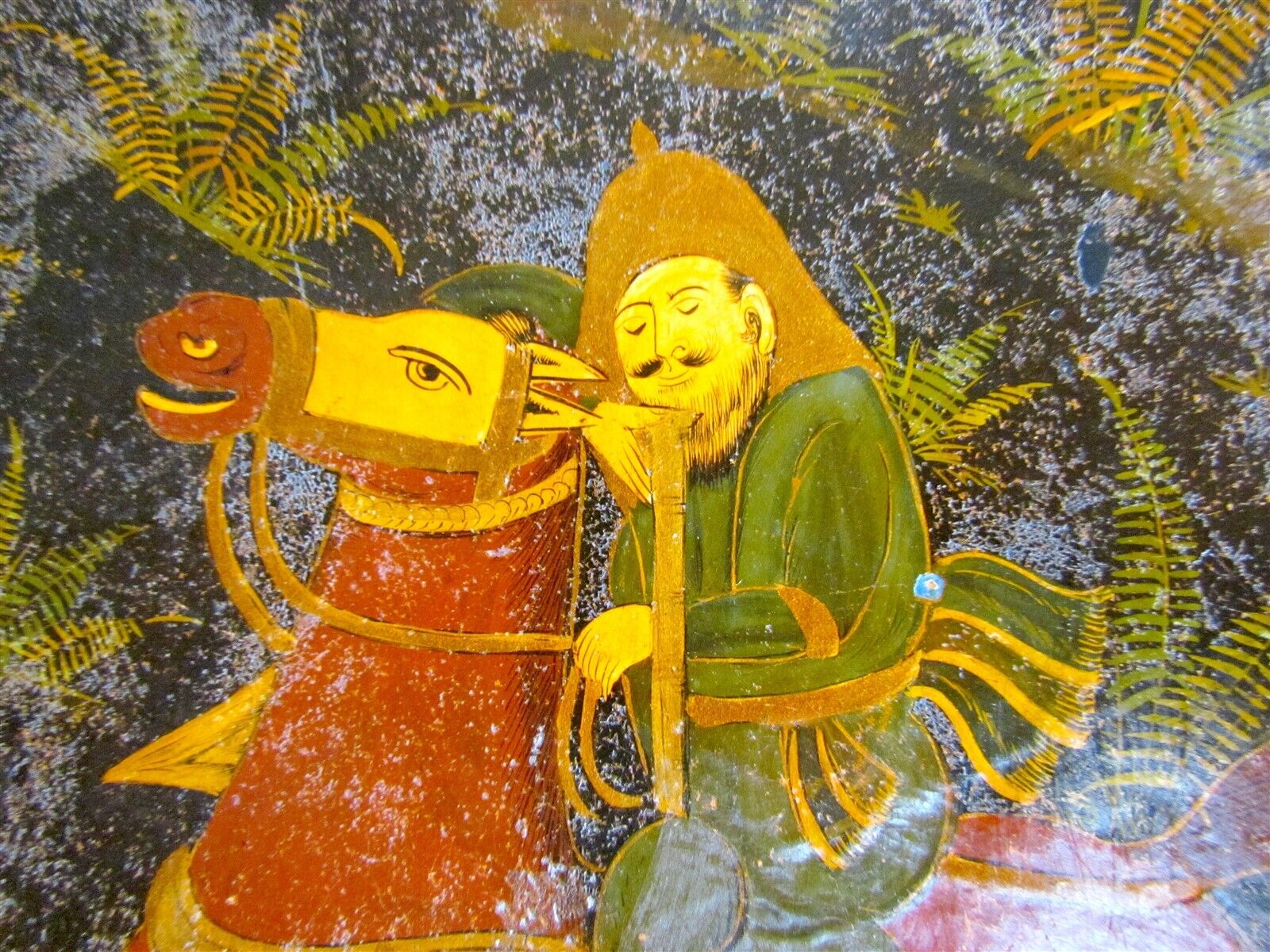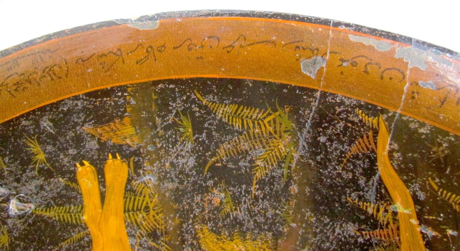ORIENTAL HUNTING LIONS SCENE PAPER MACHE HAND PAINTED LACQUER BOWL antique