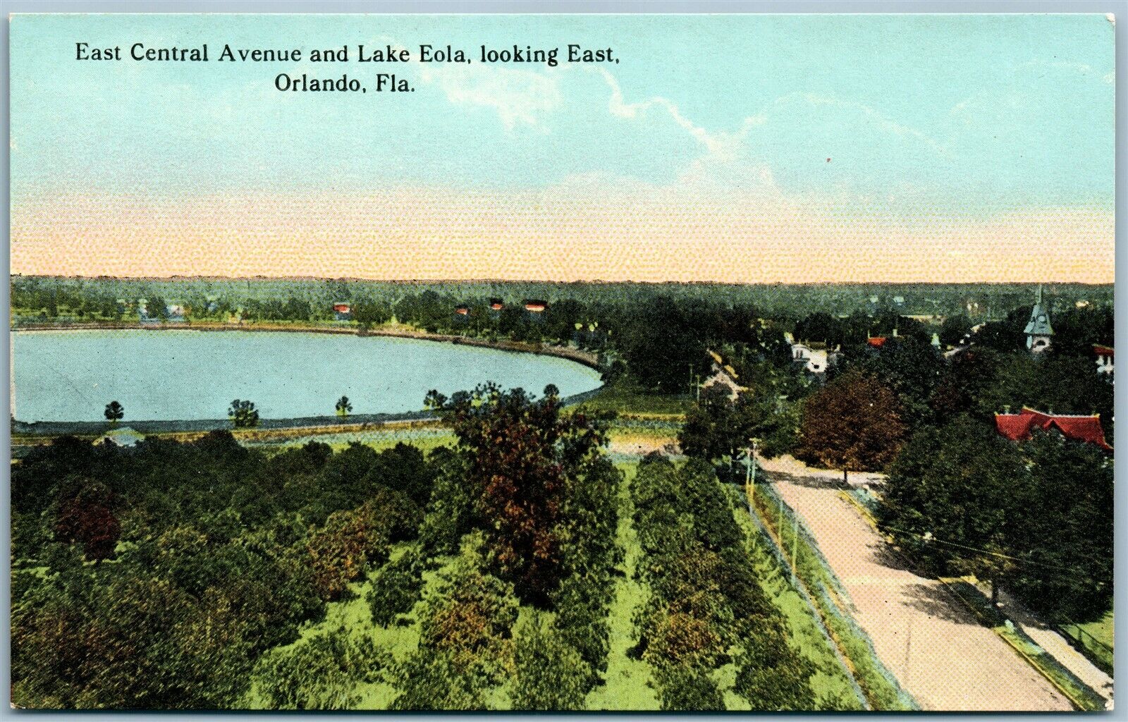 ORLANDO FL EAST CENTRAL AVE. & LAKE EOLA ANTIQUE POSTCARD