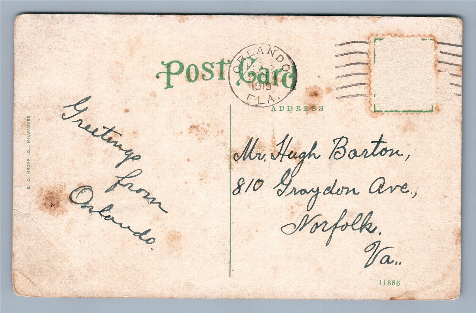 ORLANDO FL LUCERNE CIRCLE ANTIQUE POSTCARD