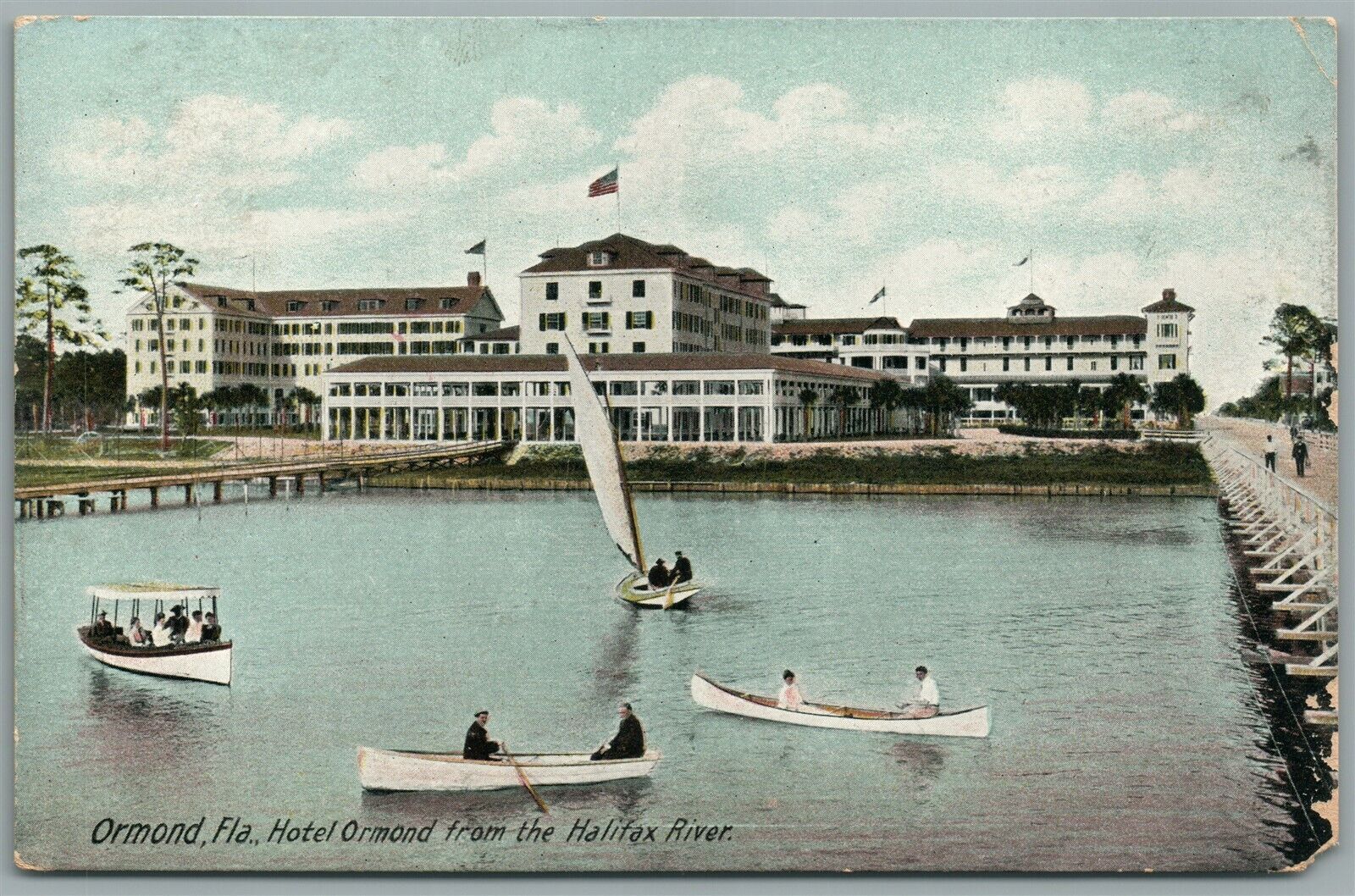ORMOND FL HOTEL FROM HALIFAX RIVER ANTIQUE POSTCARD