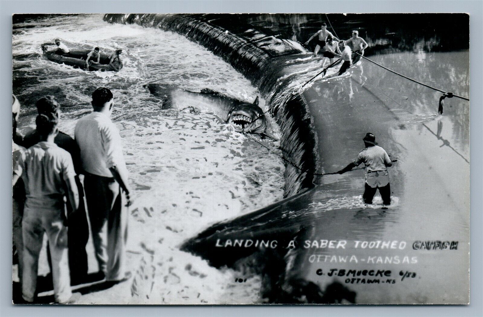 OTTAWA KS LANDING A SABER TOOTHED VINTAGE REAL PHOTO POSTCARD RPPC collage