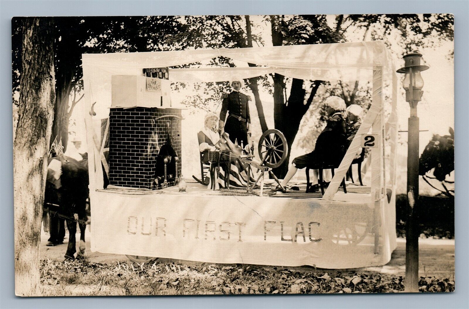 OUR FIRST FLAG PATRIOTIC PLAY SCENE ANTIQUE REAL PHOTO POSTCARD RPPC