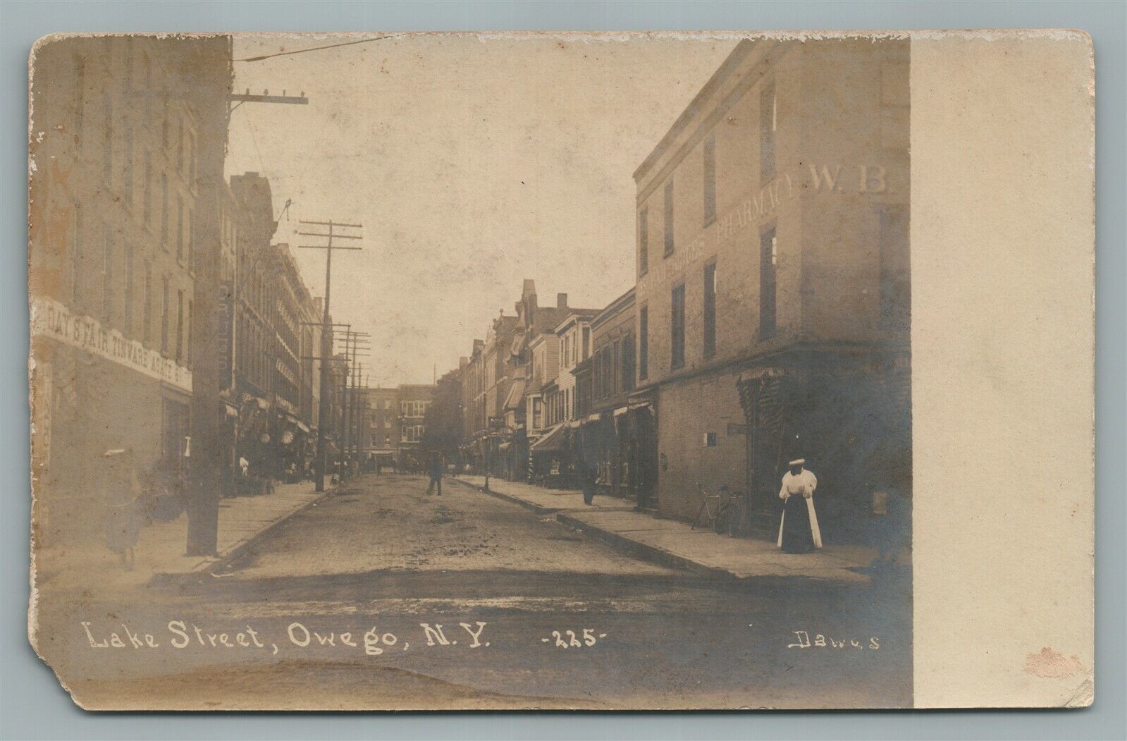 OWEGO NY LAKE STREET ANTIQUE REAL PHOTO POSTCARD RPPC