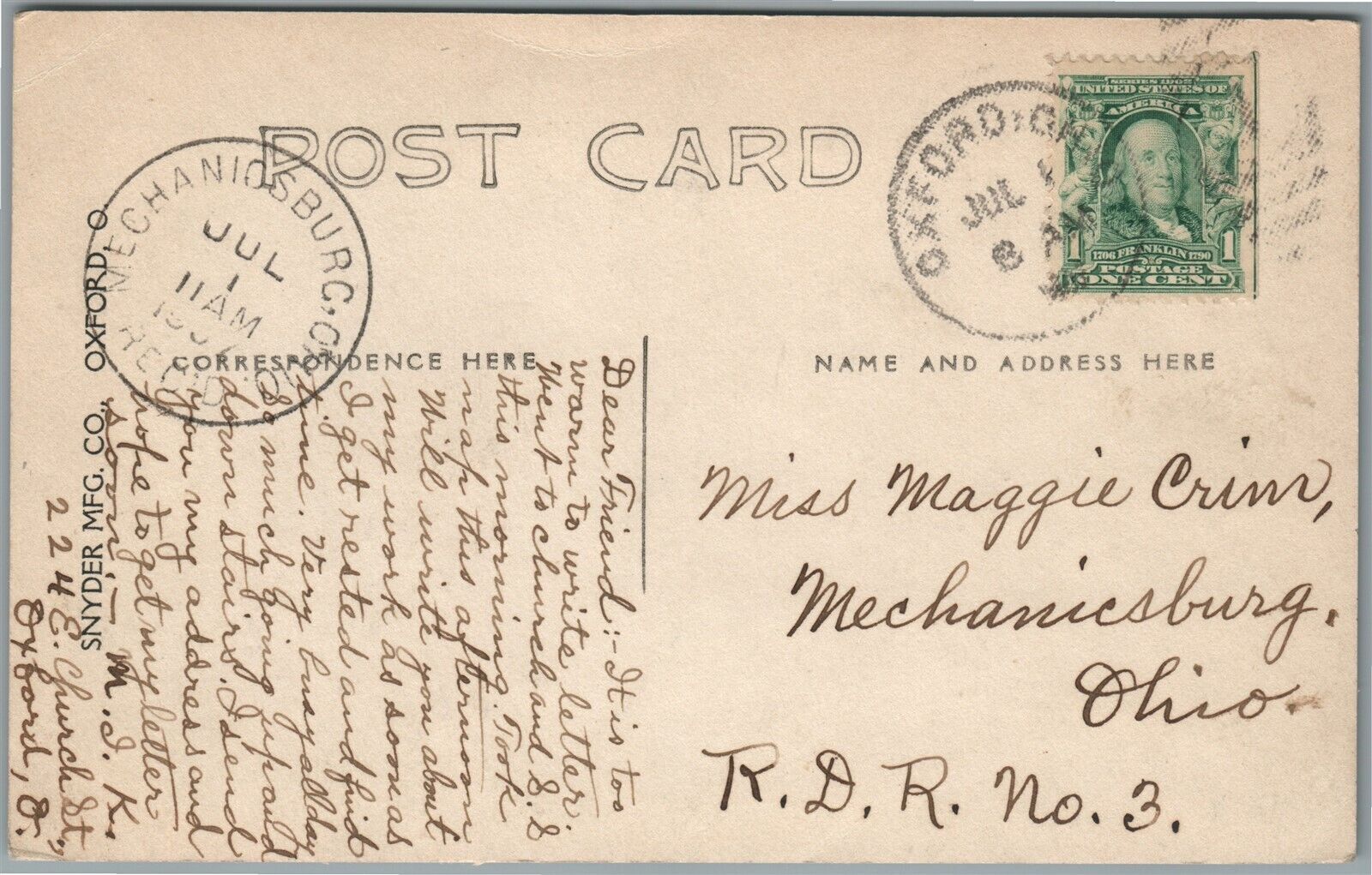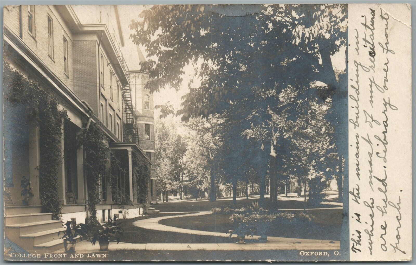 OXFORD COLLEGE OH front & lawn ANTIQUE REAL PHOTO POSTCARD RPPC