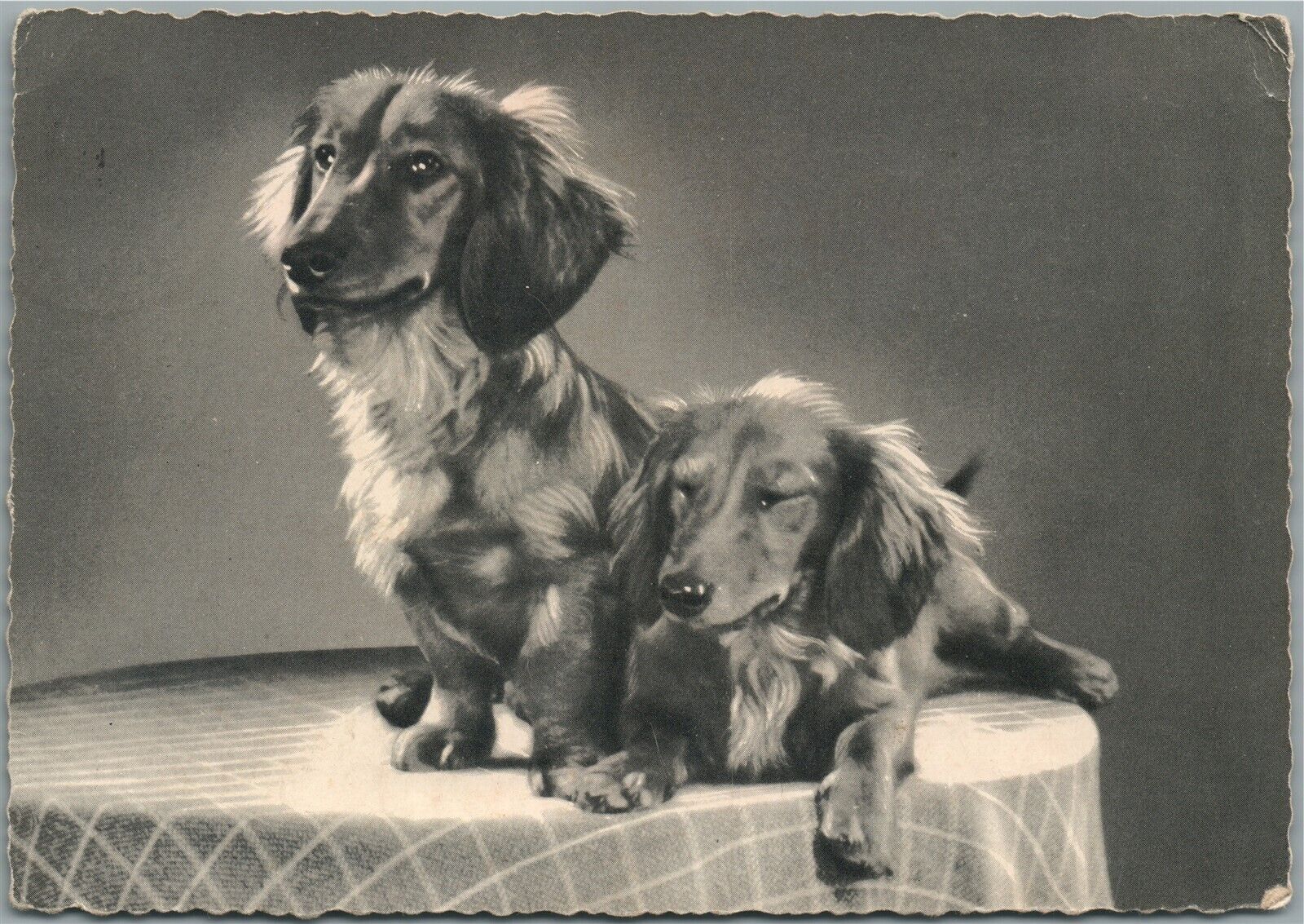 PAIR of DACHSHUND PUPPIES DOGS ANTIQUE REAL PHOTO POSTCARD RPPC