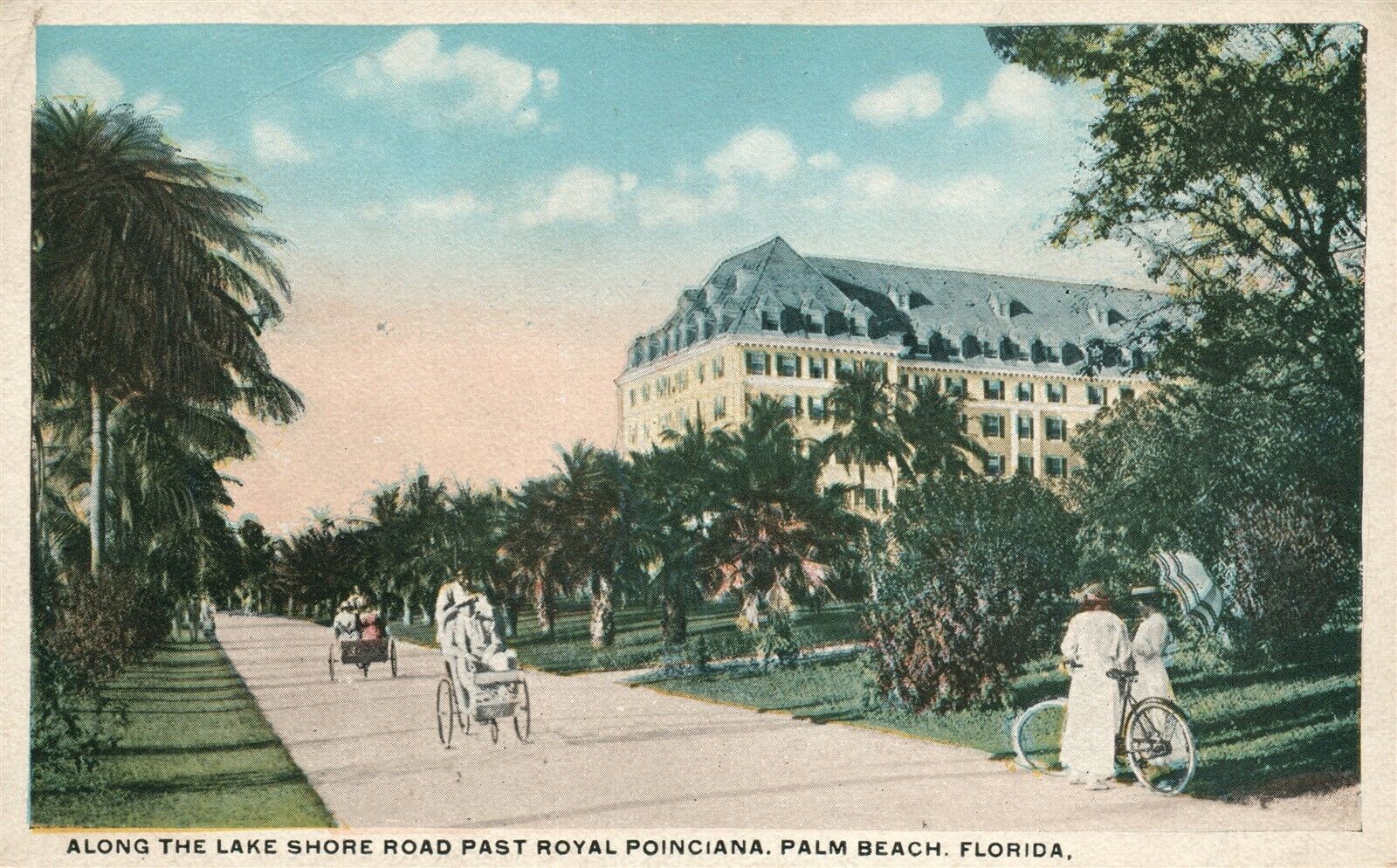 PALM BEACH FL LAKE SHORE ROAD PAST ROYAL POINCIANA ANTIQUE POSTCARD