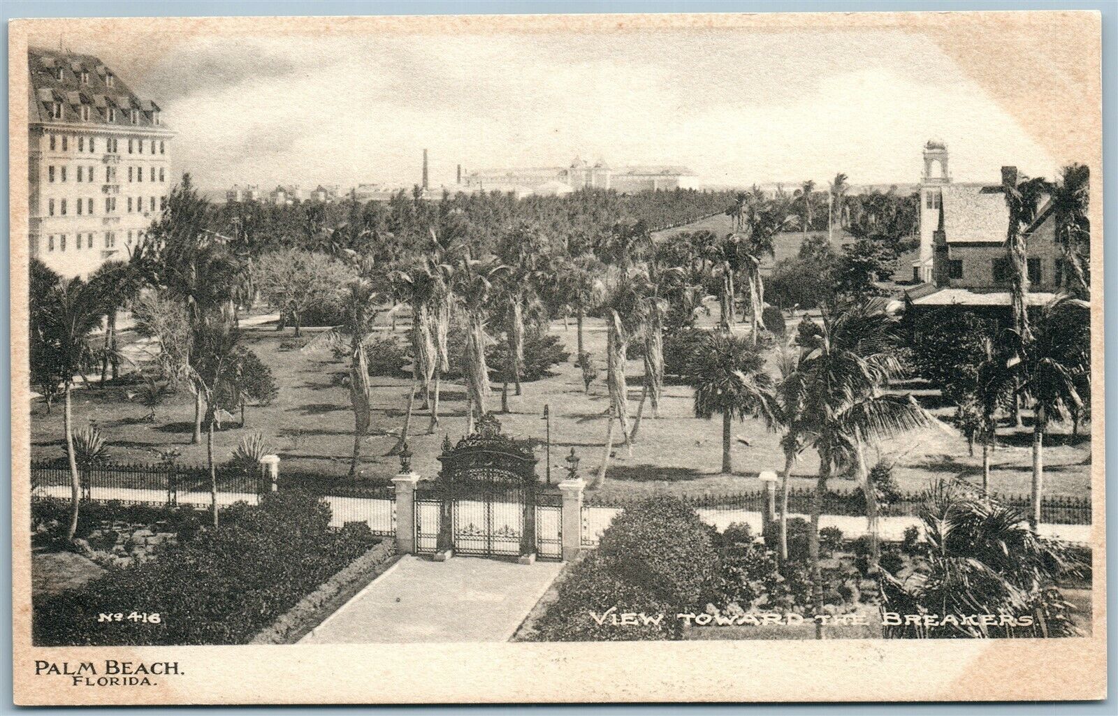 PALM BEACH FL VIEW TOWARD THE BREAKERS ANTIQUE POSTCARD