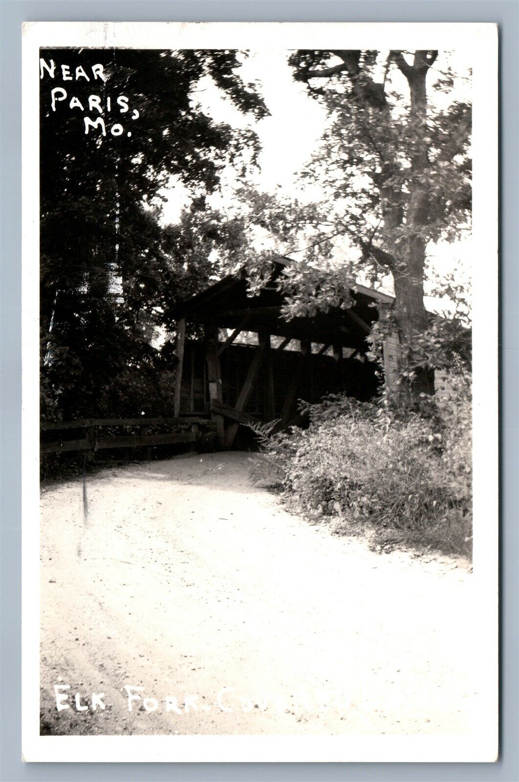 PARIS MO ELK FORK COVERED BRIDGE VINTAGE REAL PHOTO POSTCARD RPPC