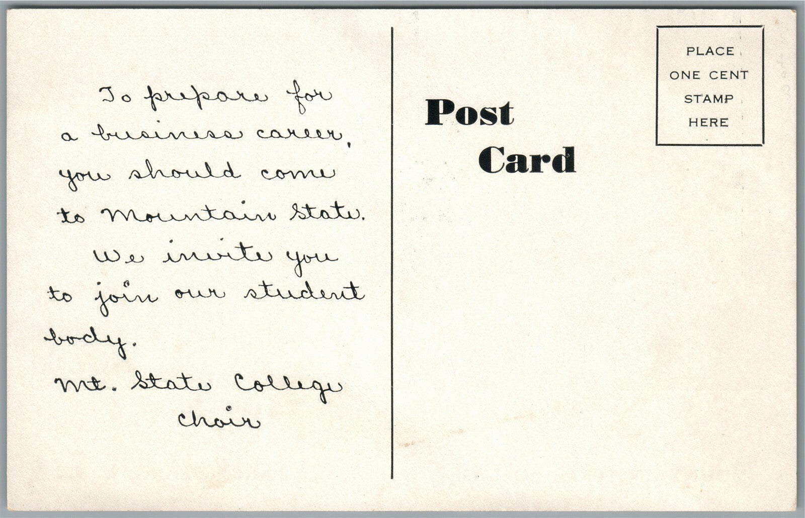 PARKERSBURG WV MOUNTAIN STATE COLLEGE GRADUATES ANTIQUE POSTCARD