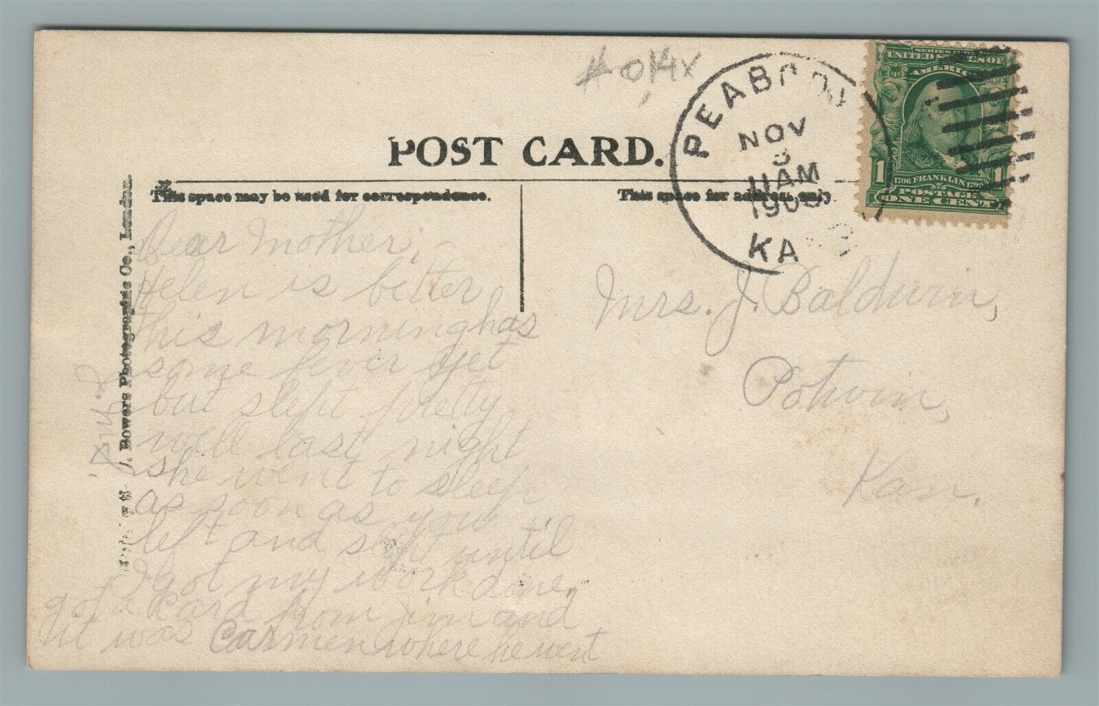 PEABODY KS RAILROAD DEPOT RAILWAY STATION ANTIQUE REAL PHOTO POSTCARD RPPC