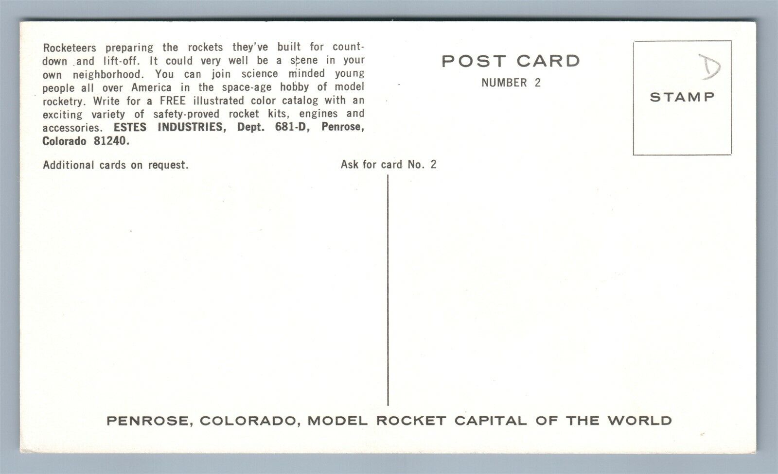 PENROSE CO ROCKETRY MODELS ESTES INDUSTRIES ADVERTISING VINTAGE POSTCARD