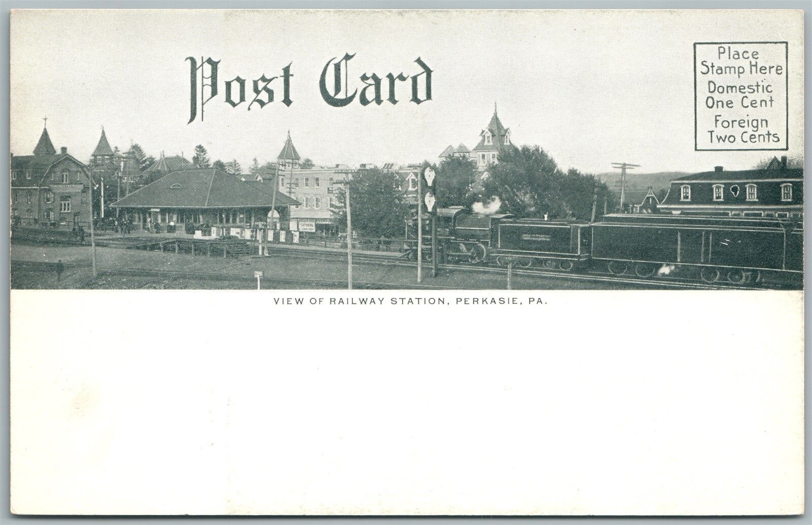 PERKASIE BUCKS CO PA MENLO PARK RAILWAY STATION ANTIQUE DOUBLE SIDED POSTCARD