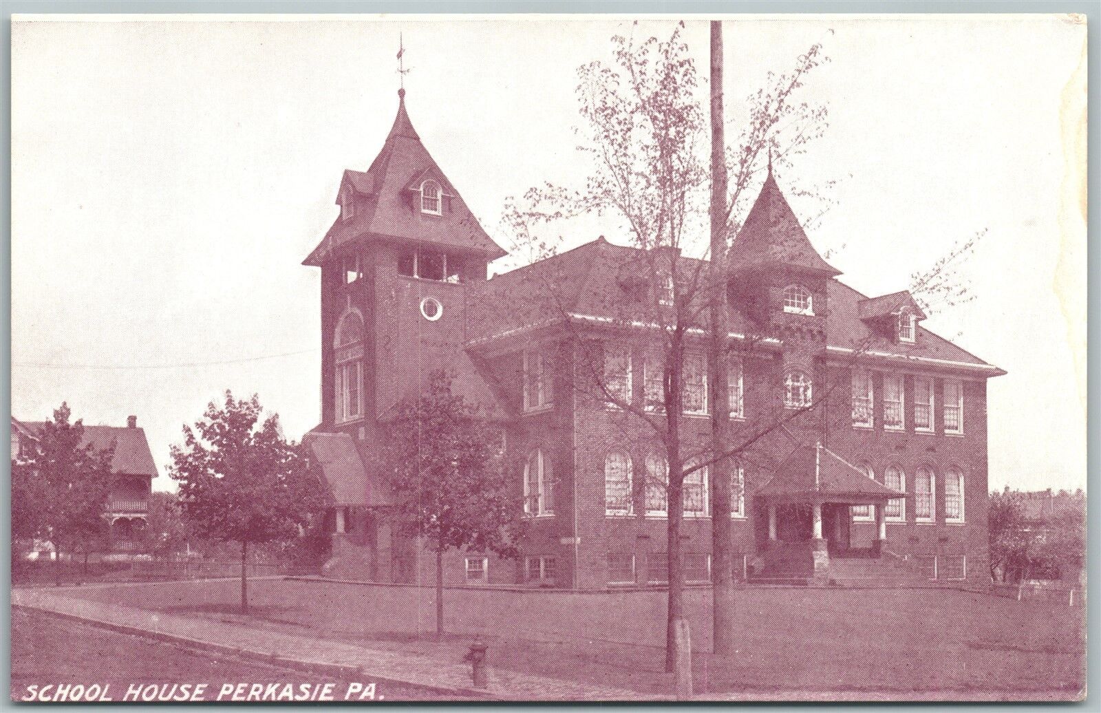 PERKASIE BUCKS COUNTY PA SCHOOL HOUSE UNDIVIDED ANTIQUE POSTCARD