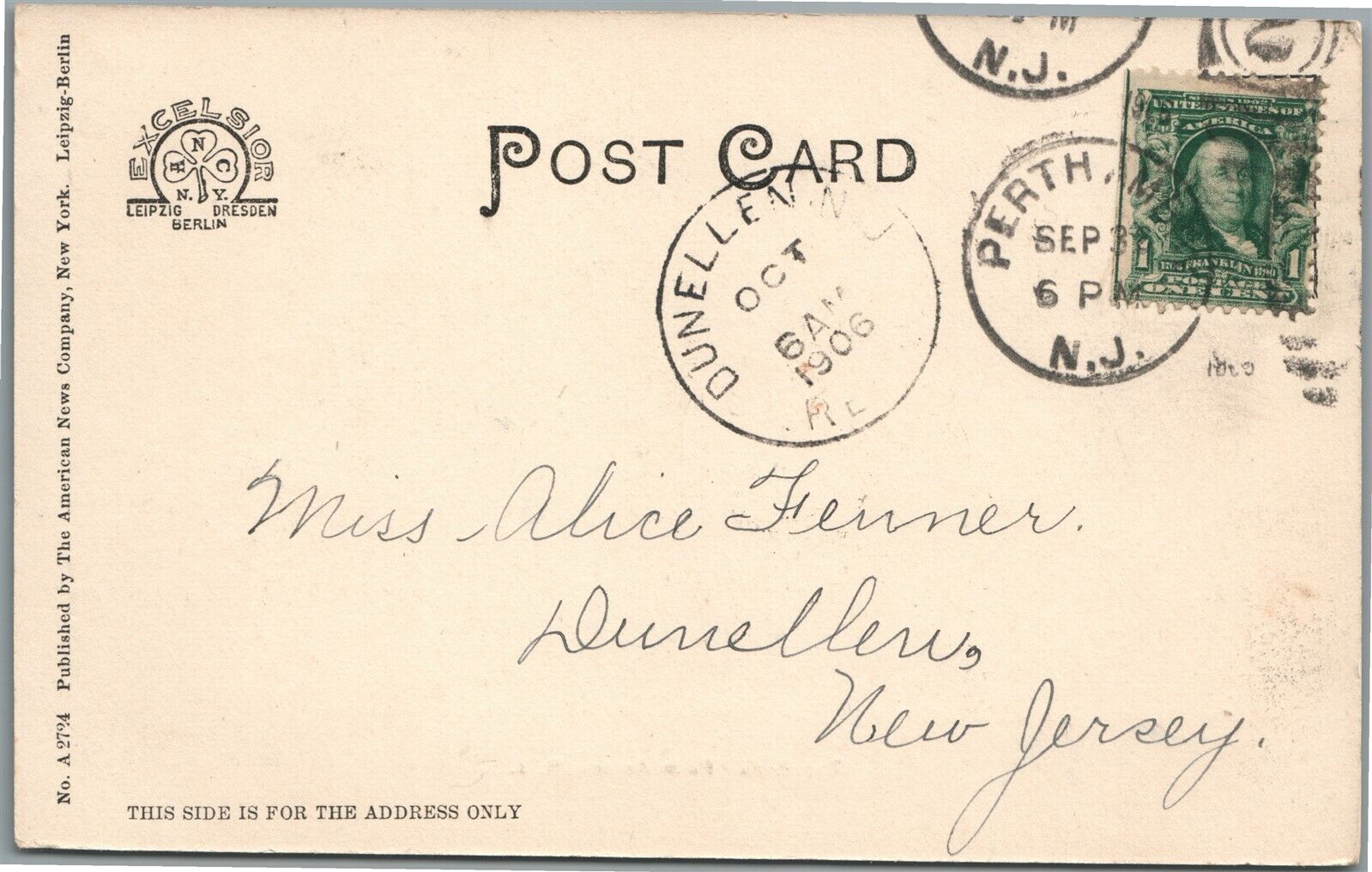 PERTH AMBOY NJ THE BLUFF ANTIQUE POSTCARD
