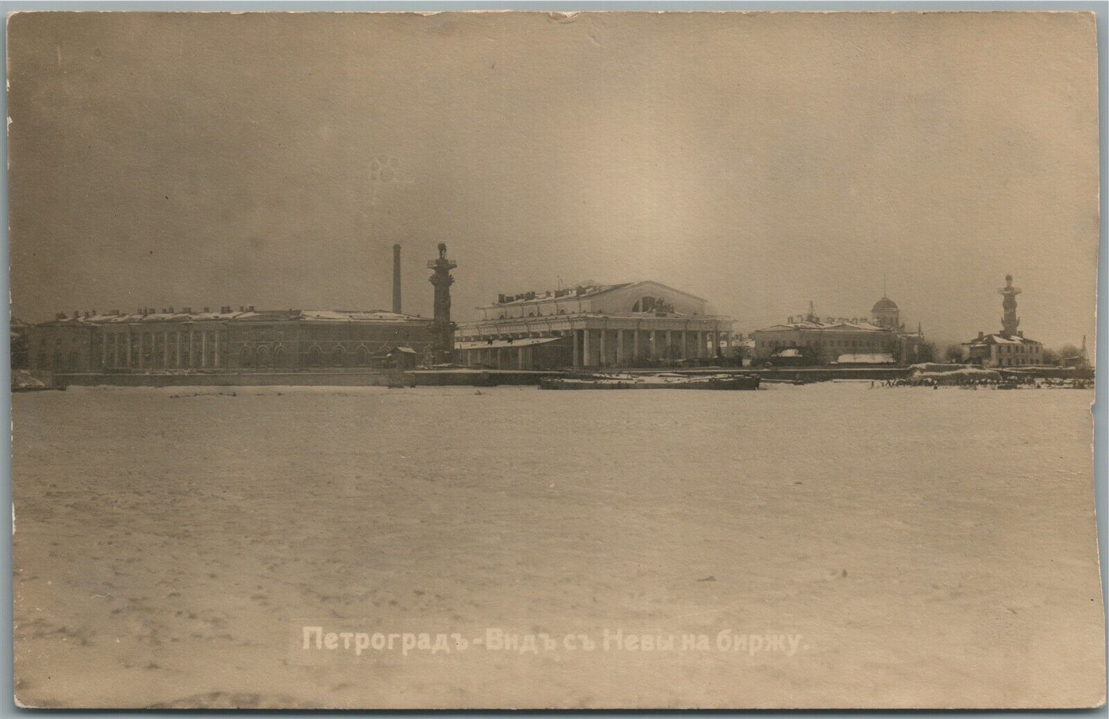 PETROGRAD RUSSIA EXCHANGE VIEW FROM NEVA RIVER ANTIQUE REAL PHOTO POSTCARD RPPC