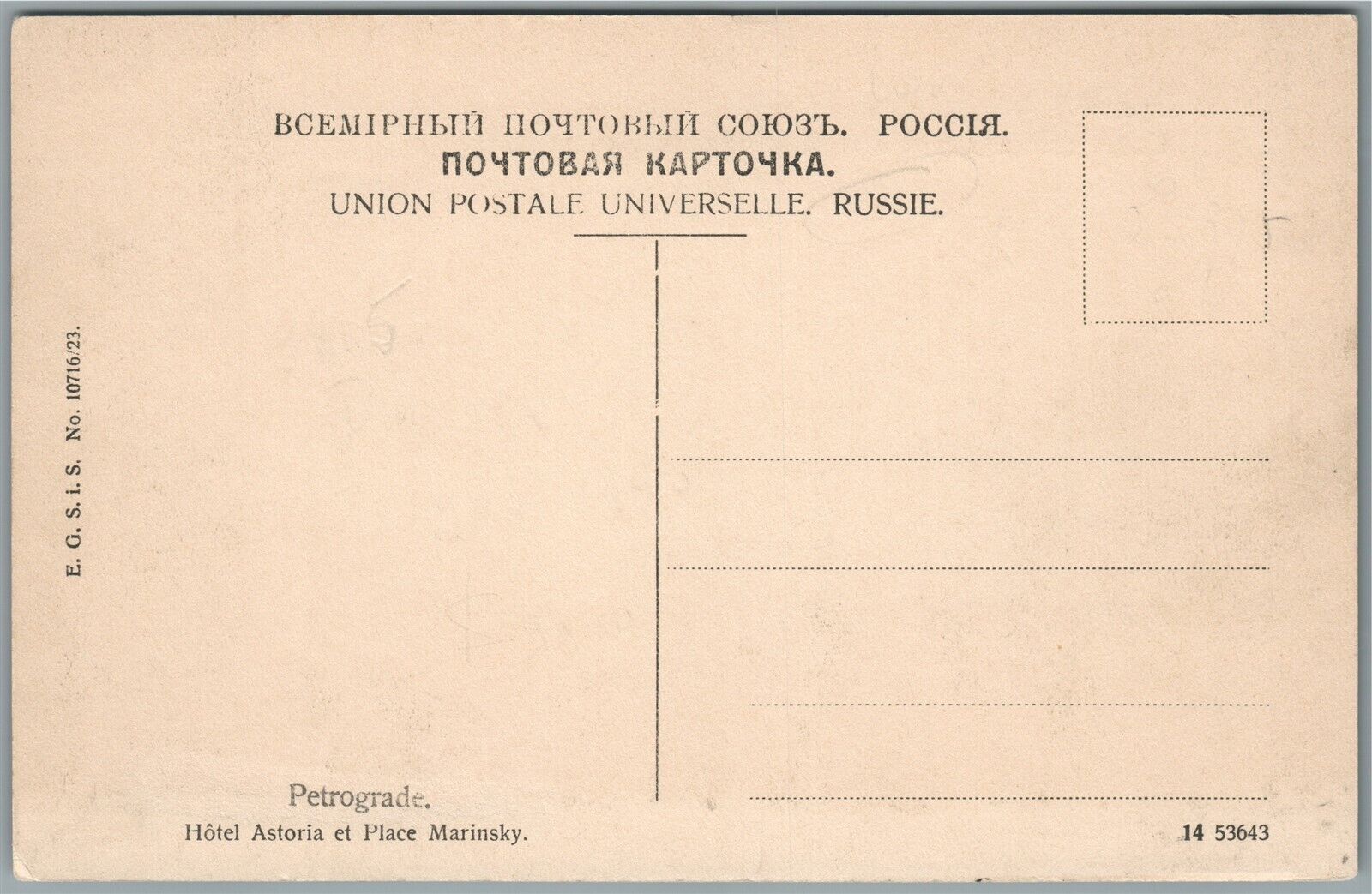 PETROGRAD ST. PETERSBURG RUSSIA ASTORIA HOTEL MARIINSKII SQUARE ANTIQUE POSTCARD