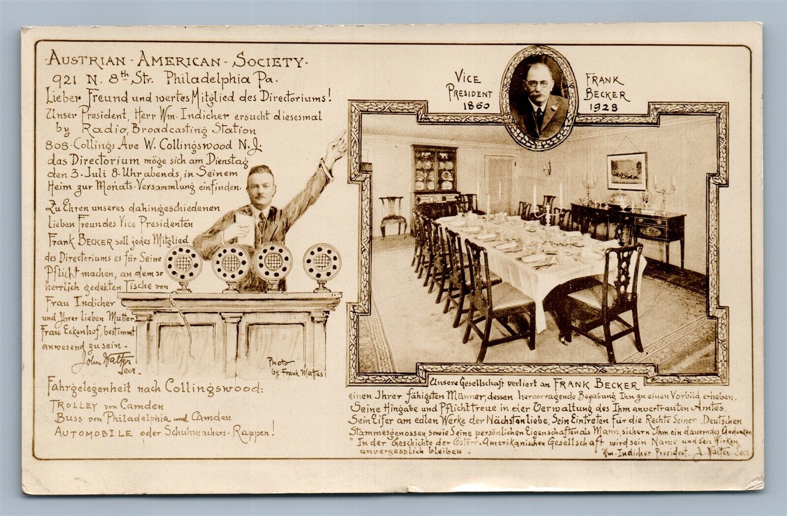 PHILADELPHIA PA AUSTRO AMERICAN SOCIETY 1928 ANTIQUE REAL PHOTO POSTCARD RPPC