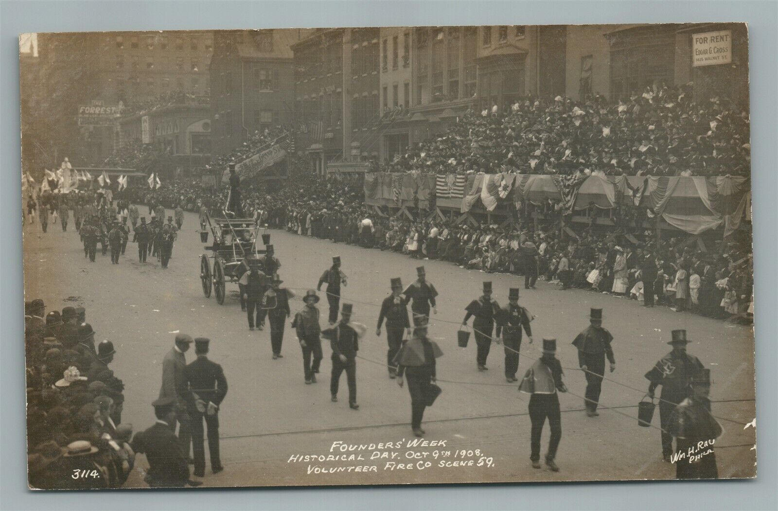 PHILADELPHIA PA FOUNDERS WEEK VOLUNTEER FIRE CO RPPC ANTIQUE REAL PHOTO POSTCARD