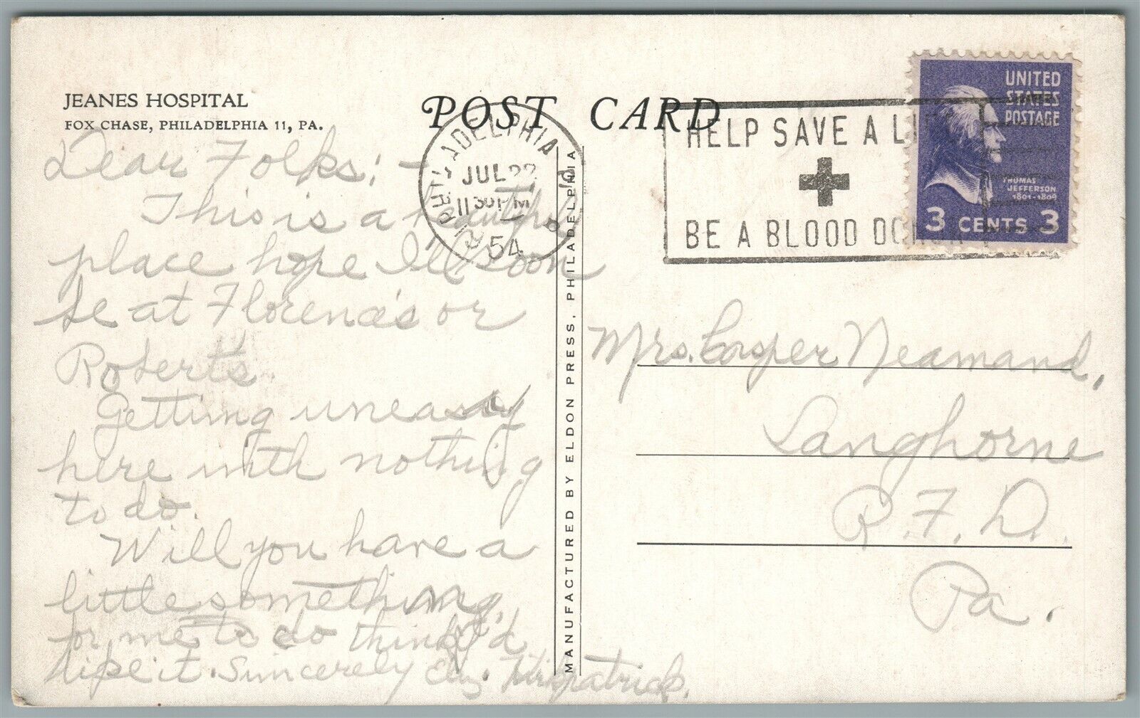 PHILADELPHIA PA FOX CHASE JEANES HOSPITAL VINTAGE POSTCARD