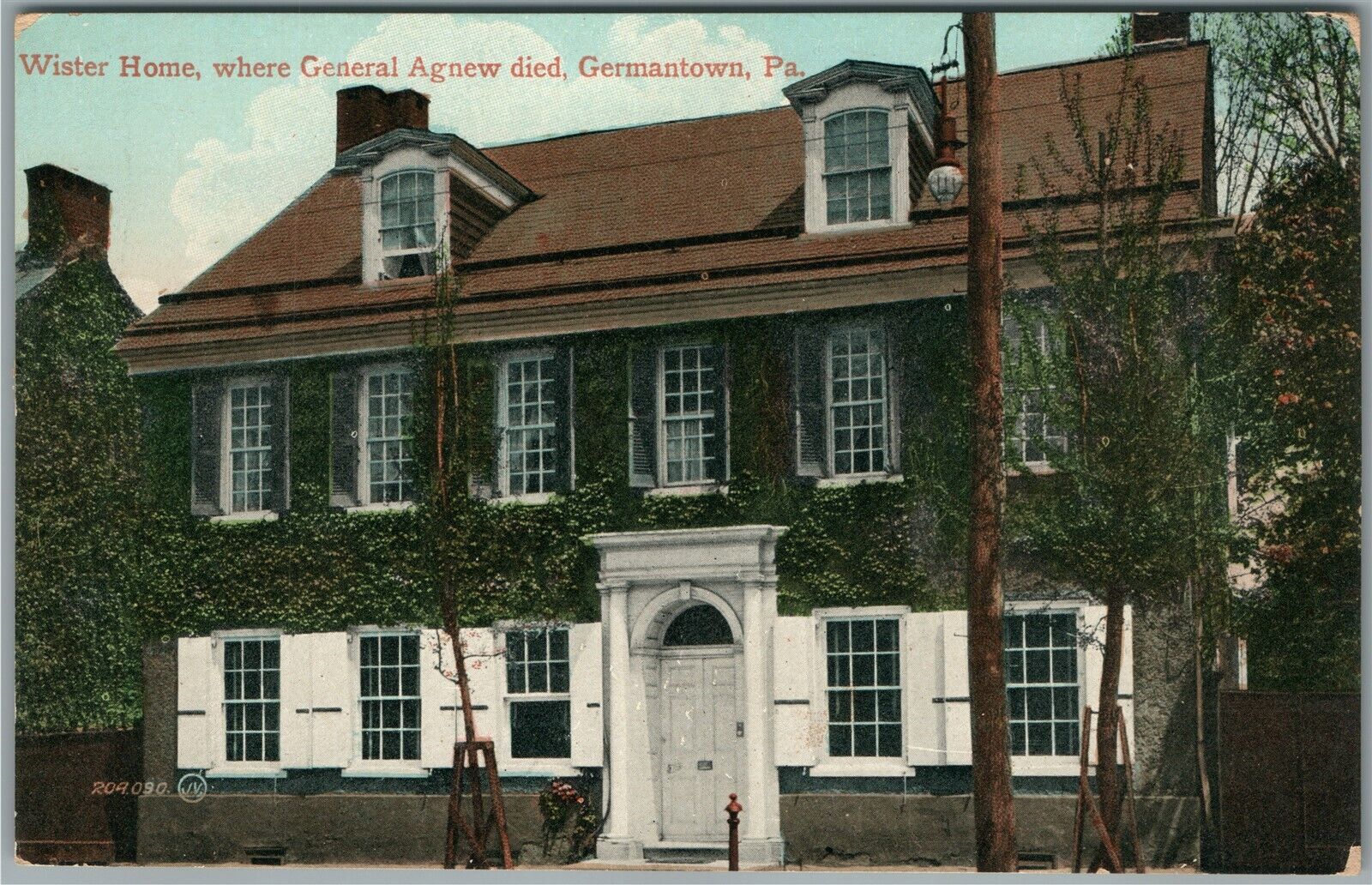 PHILADELPHIA PA GERMANTOWN WISTER HOME WHERE GENERAL AGNEW DIED ANTIQUE POSTCARD