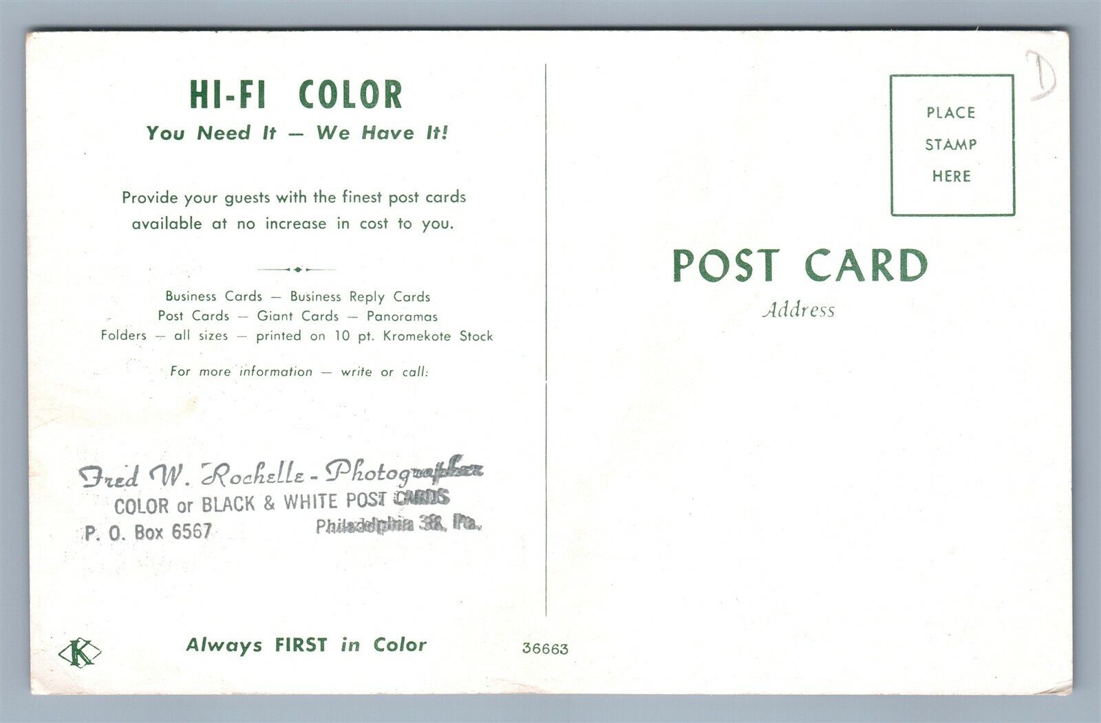 PHILADELPHIA PA POST CARD PRINTED PHOTOGRAPHER ADVERTISING VINTAGE POSTCARD